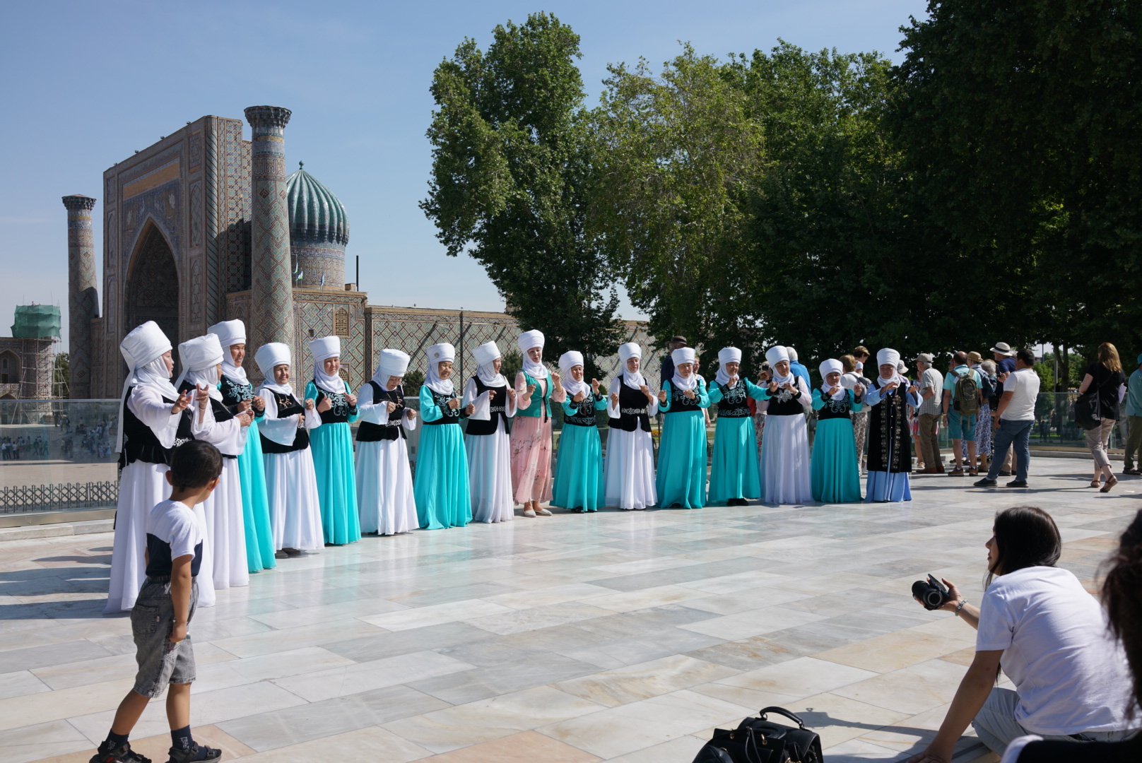 在雷吉斯坦广场跳舞的阿姨们