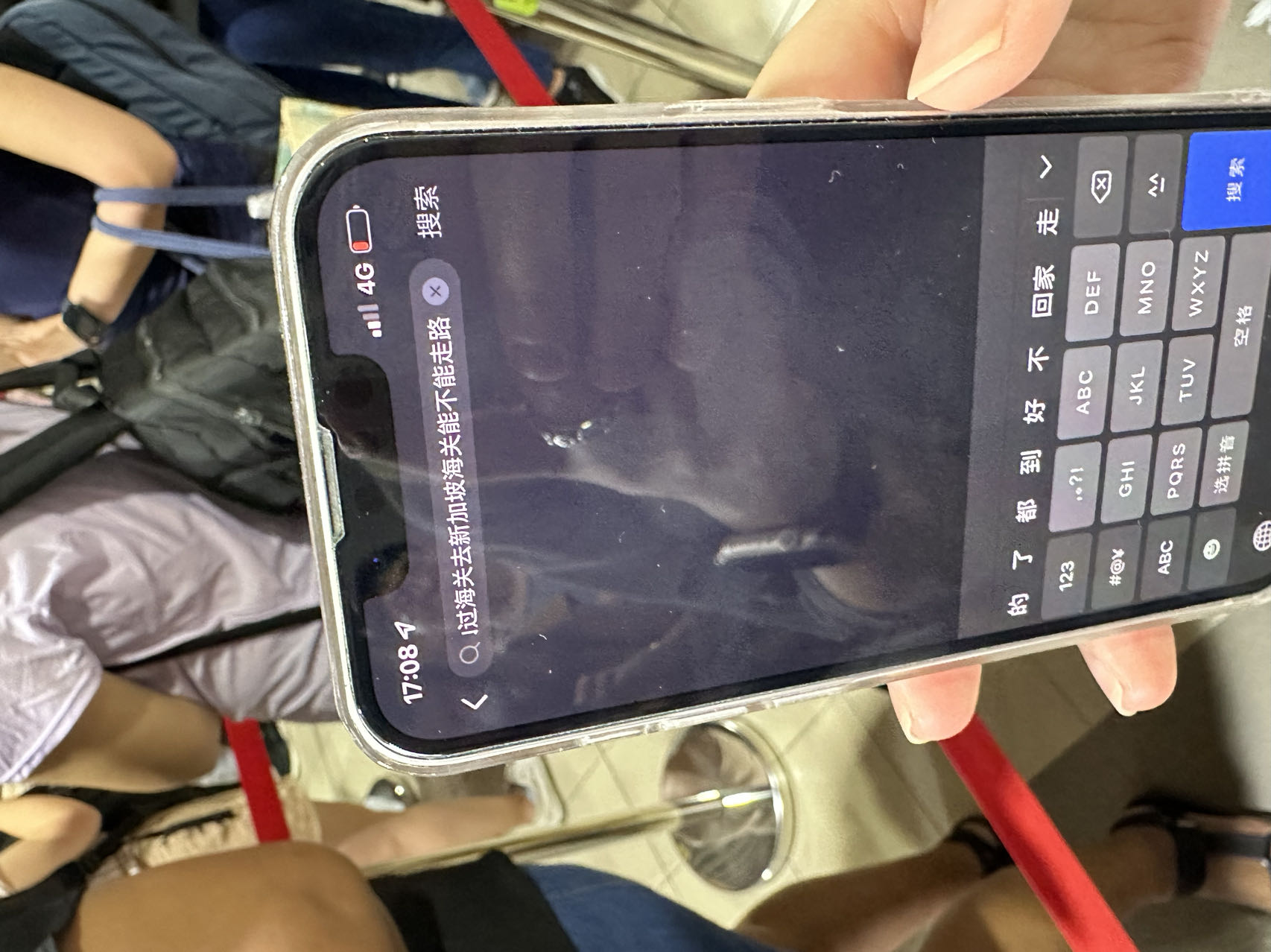 还有四个小时飞机就要起飞了,我们还在另一个国家,两个人在队伍里搜索能不能走到新加坡
