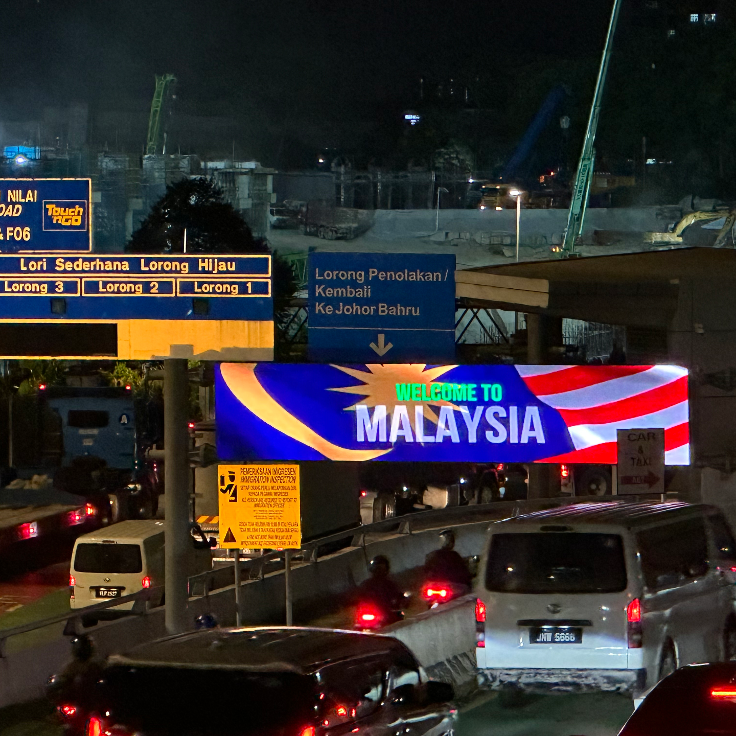 在去新山的路上,我们两个站路边跟公交车司机“手舞足蹈”,提着行李箱跋山涉水,在进关和入住的时候大排长龙,可是“心态爆炸”的Shyla还是听我在路上贫嘴,两个人在一起的时候就感觉地球爆炸也没什么了不起的。
