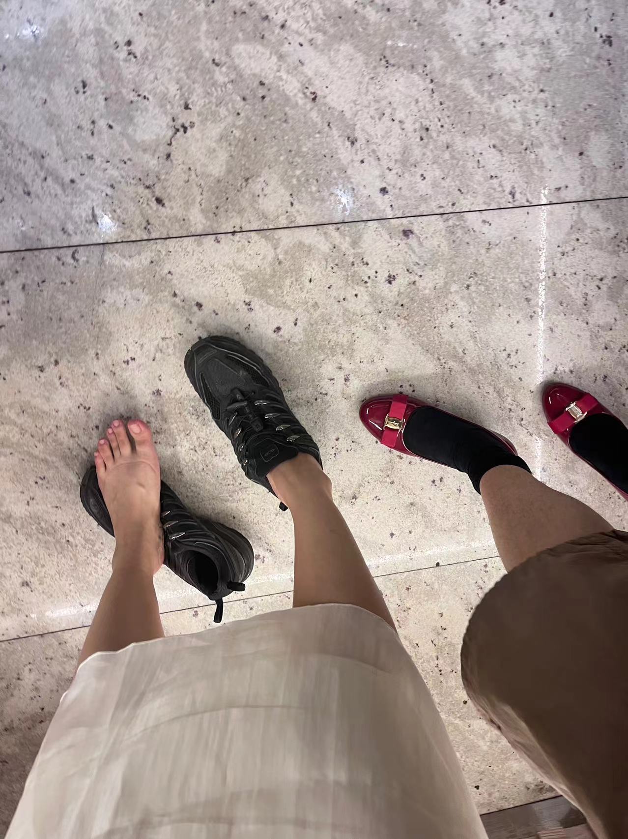 电梯里我把运动鞋让给了Shyla,小皮鞋还让我穿进去啦~
