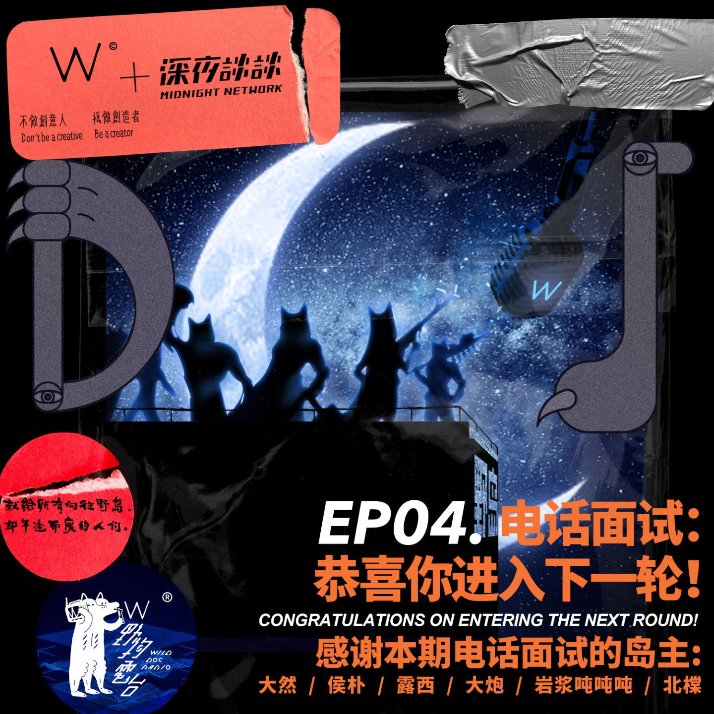 更多精彩的声音简历,以及野狗头子、相征的真诚点评,欢迎收听本期「W野狗的野岛」!如果你也想尝试做播客,欢迎将你的声音简历以mp3或wav的格式投递至jobs@midnightalks.com,你的声音简历有可能出现在后续的节目中!