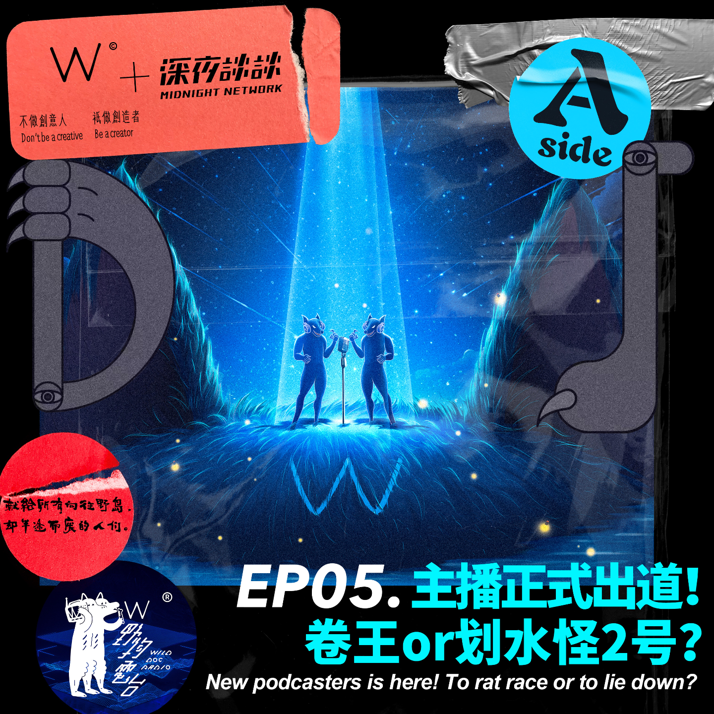 另外,我们在后续的节目中将进行「踢馆」环节,欢迎将你的声音简历以mp3或wav的格式投递至jobs@midnightalks.com,如果你的简历优秀且适合,你仍有机会登上「W野狗的野岛」,成为主播!