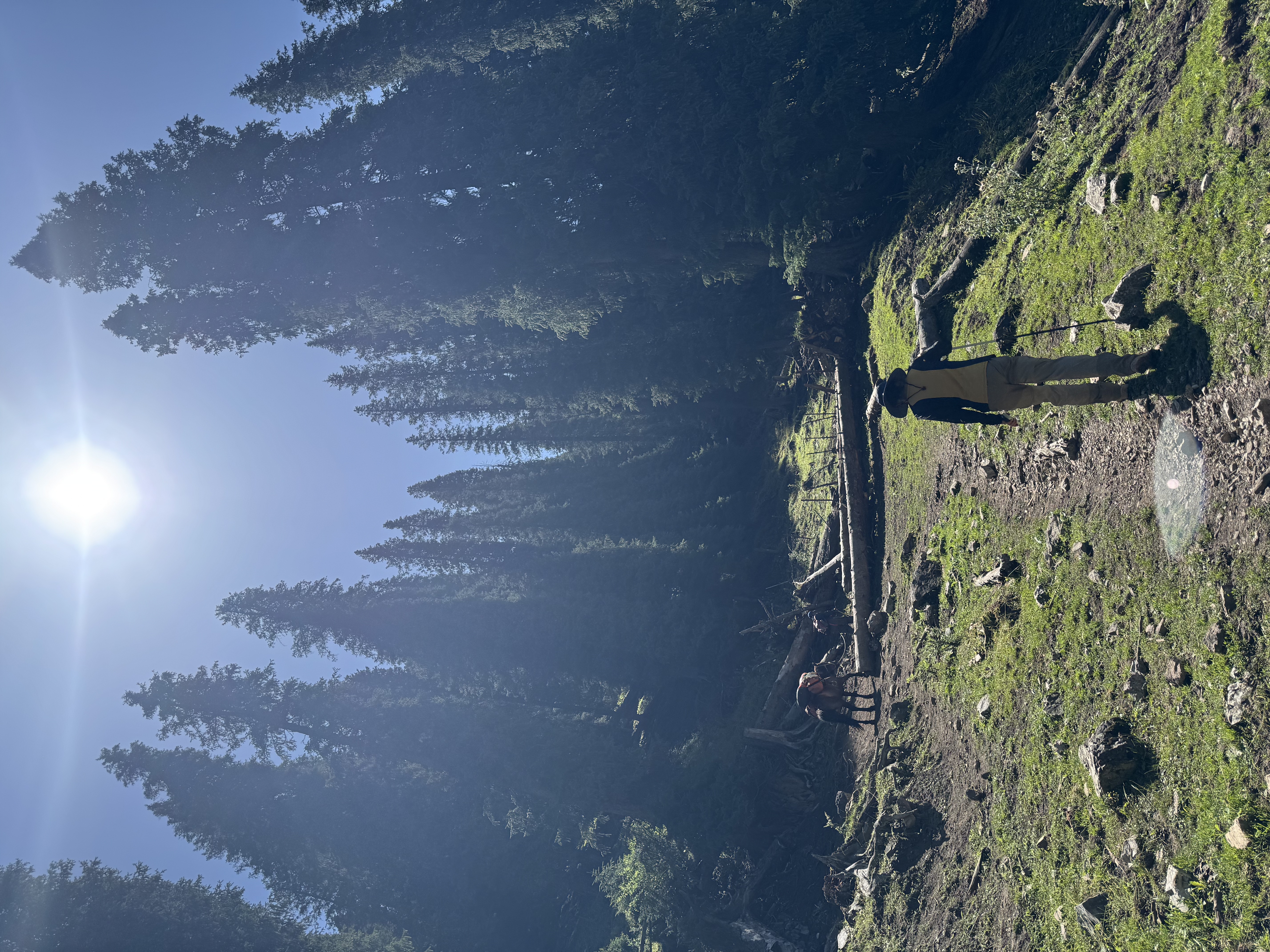 参天树林中徒步