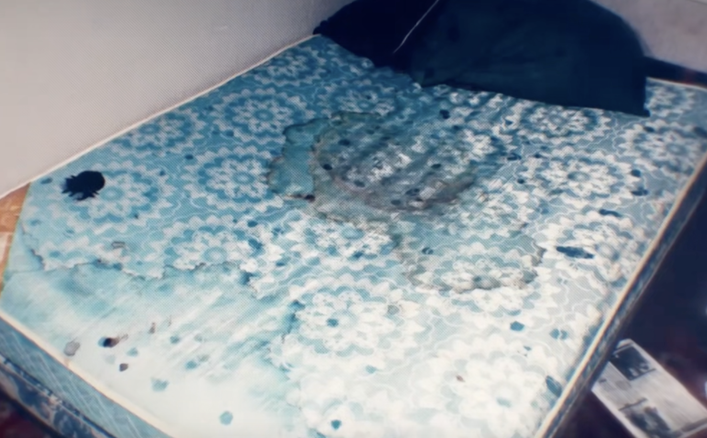 「图为满是血迹的床垫」