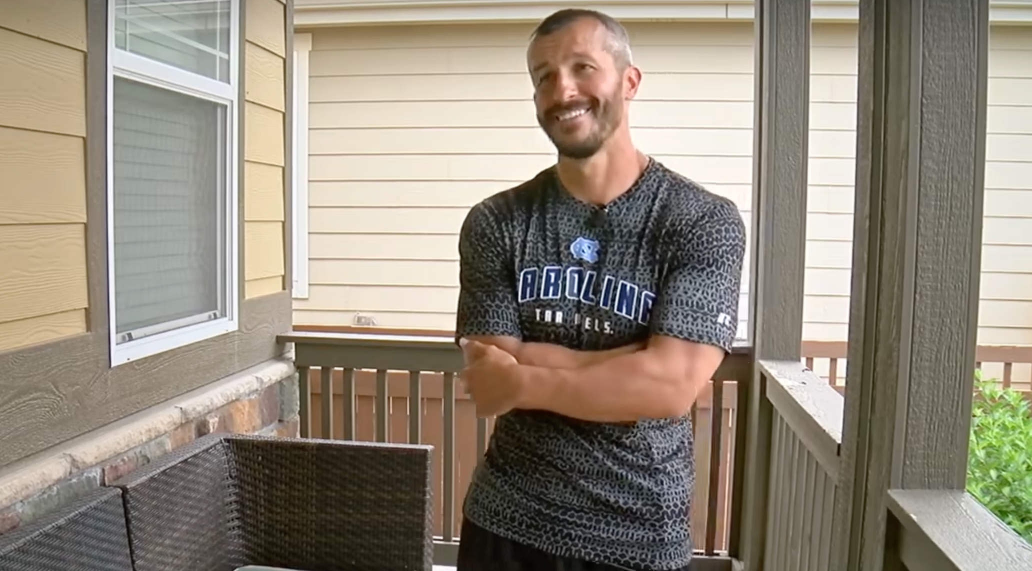 当时FBI带着警犬上门的时候,Chris正在准备接受两家电视台的采访,因为现场人员比较多,气味混杂,所以警察请所有人先从房子里出来,所以当时Chris在门外的回廊里接受了采访,反正一点儿都没耽误事儿!他希望自己的妻女能快点回家,过程中他表现的毫无压力,很难判断他是因为创伤自我保护而麻木还是因为真的不伤心所以如此的放松。但是当时他并不知道警察带来了搜尸犬,我想如果他知道的话,可能就不会这样压力全无了。因为在4小时之后,他就被警方传唤到警局接受问话。