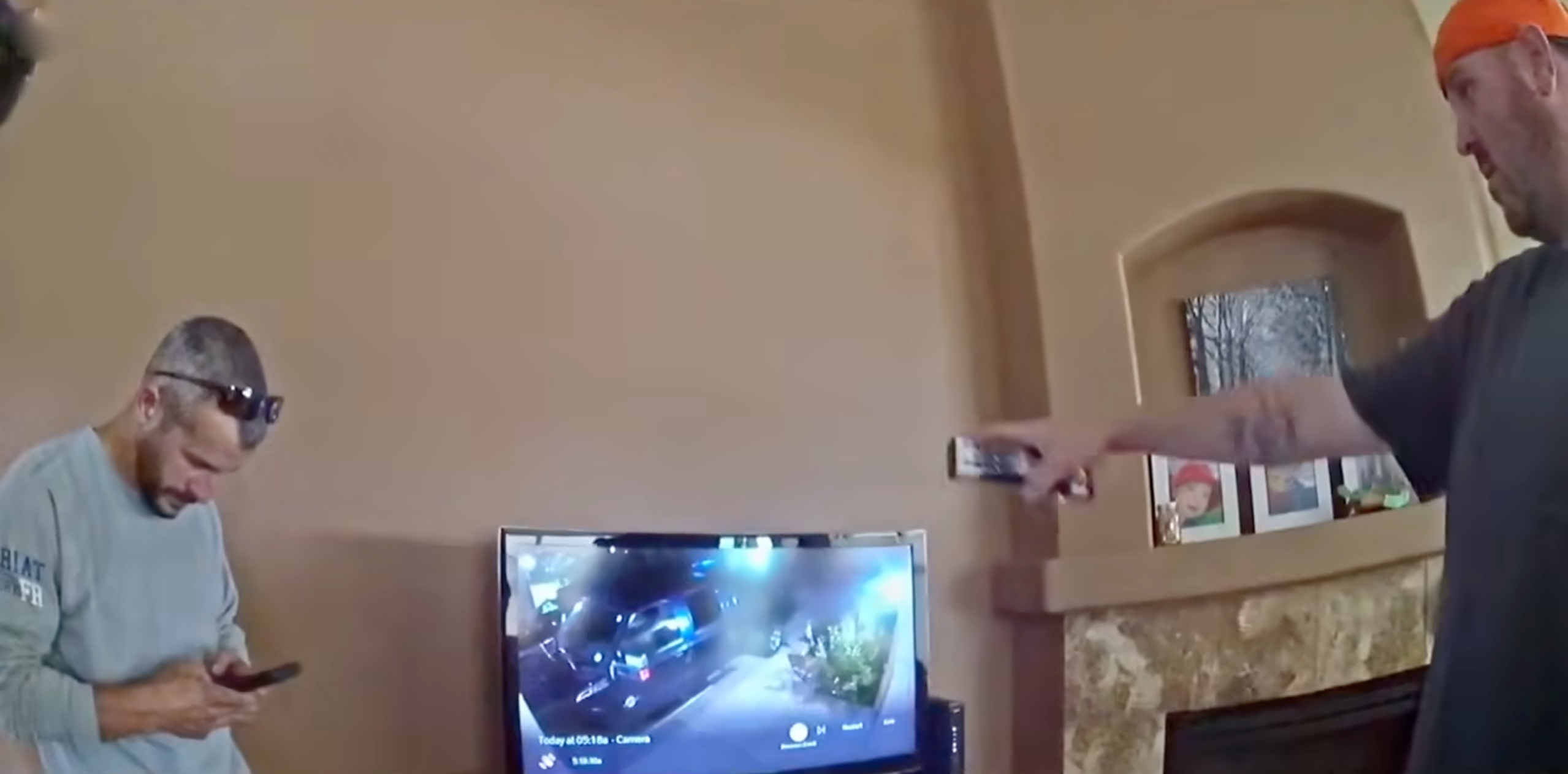 他站在电视旁边,对于监控视频完全不在意,一直在捣鼓手机。