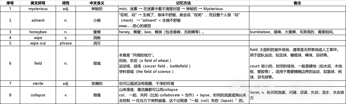 开聊前:打开我们准备的 “单词学习表”,单词拼写+词性+中文释义,一目了然