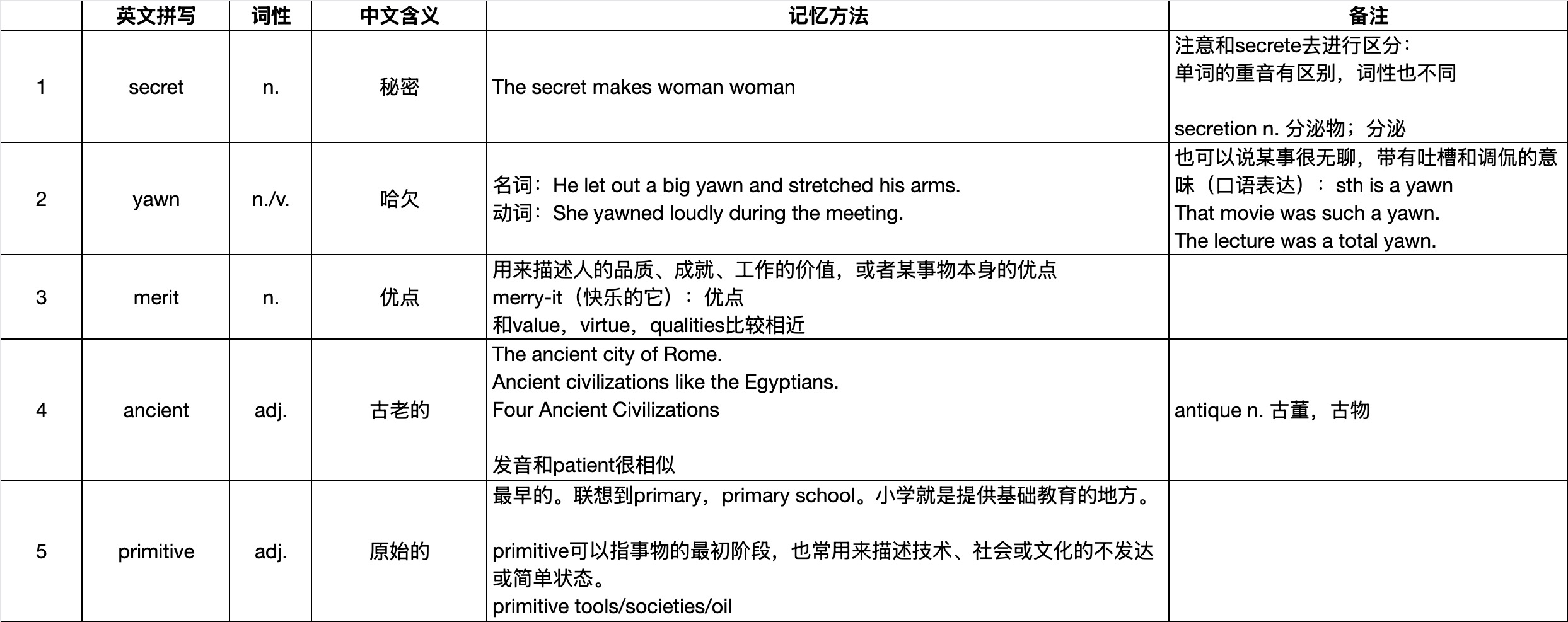 开聊前:打开我们准备的 “单词学习表”,单词拼写+词性+中文释义,一目了然