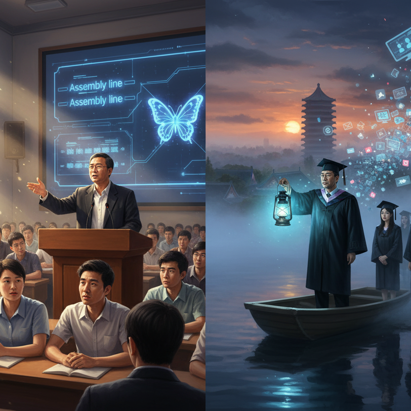 而在毕业致辞里,面对即将步入社会的学子,程主任则以冷静的笔触剖析了“技术狂欢”下精神世界的贫乏、无处不在的焦虑和“冗余的想象力正在吞噬着生活的意义与勇气”的困境。他挑战“空洞的形容词性”与“抽象的功利主义”,引导毕业生区分理想与欲望,强调内在的平静比外部成功更为重要。他提出“为己之学”的理念,呼吁我们回归真实的自己,不为外在评价所累,将哲学视为生命旅程中的“渡船”,以隐忍的安然与投身的自觉,实现“静水流深”的生命理想。