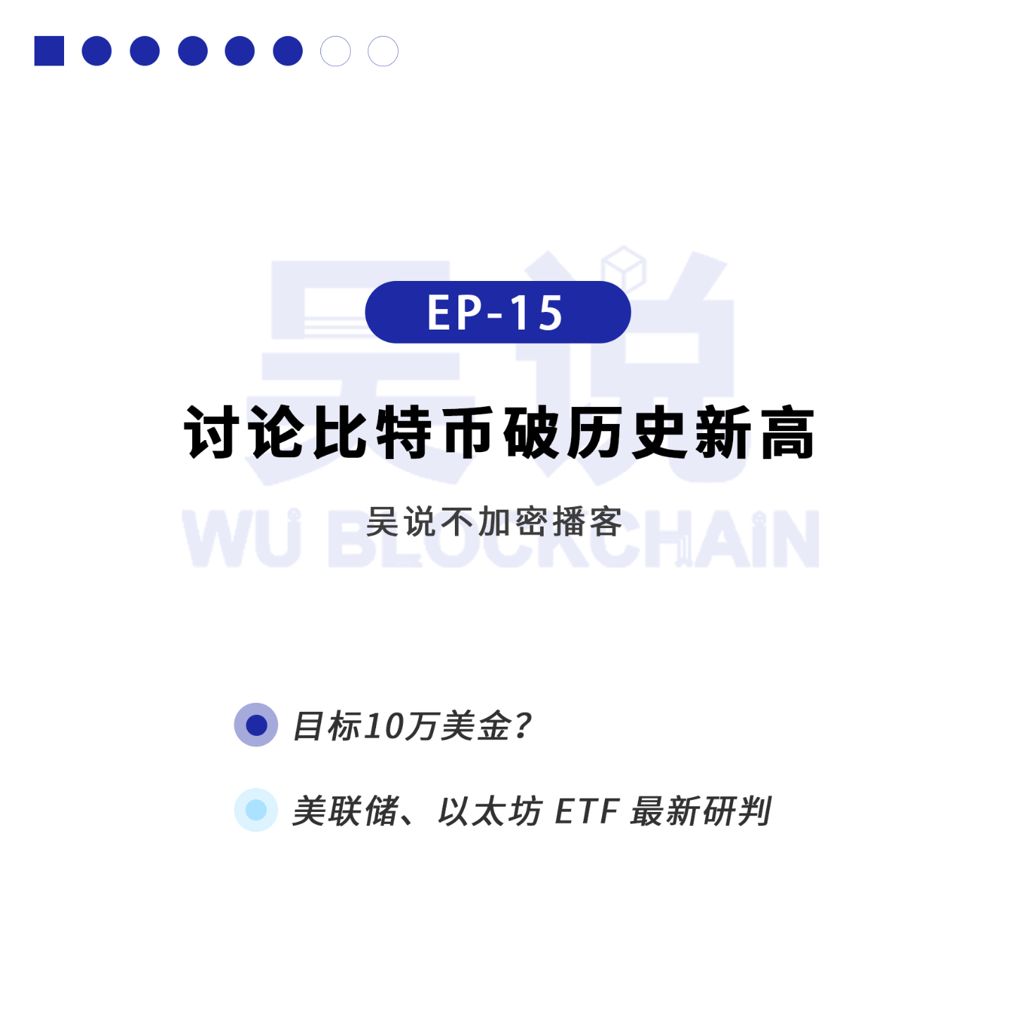 吴说主编 Colin 与独立宏观分析师 Luxon 讨论了比特币价格破历史新高。比特币于本周二再次升至 2021 年 11 月 10 日 6.9 万美元的历史高位,时隔 846 天再次达历史新高。Luxon 认为美国资产管理行业 3% 投入比特币是正常的,因此下半年比特币会涨至 10 万美金,一季度可能涨至 7 万美金;他认为美联储降息需要等到下半年,以太坊现货 ETF 通过也不甚乐观,因此可能是比特币一枝独秀的牛市。以上内容均为分析师个人观点,不代表吴说意见,不提供任何财务建议,请听众谨慎参与投资,遵守所在地的法律法规。