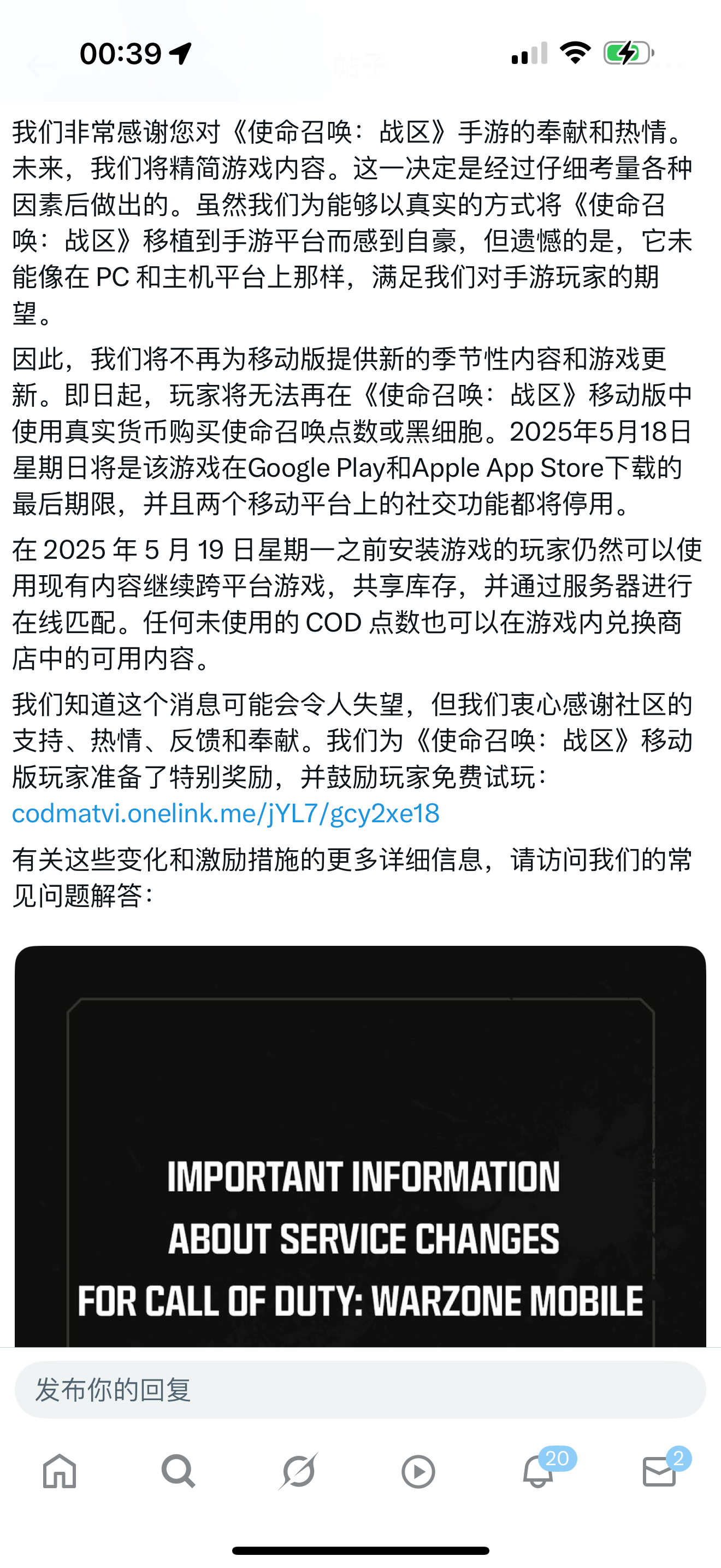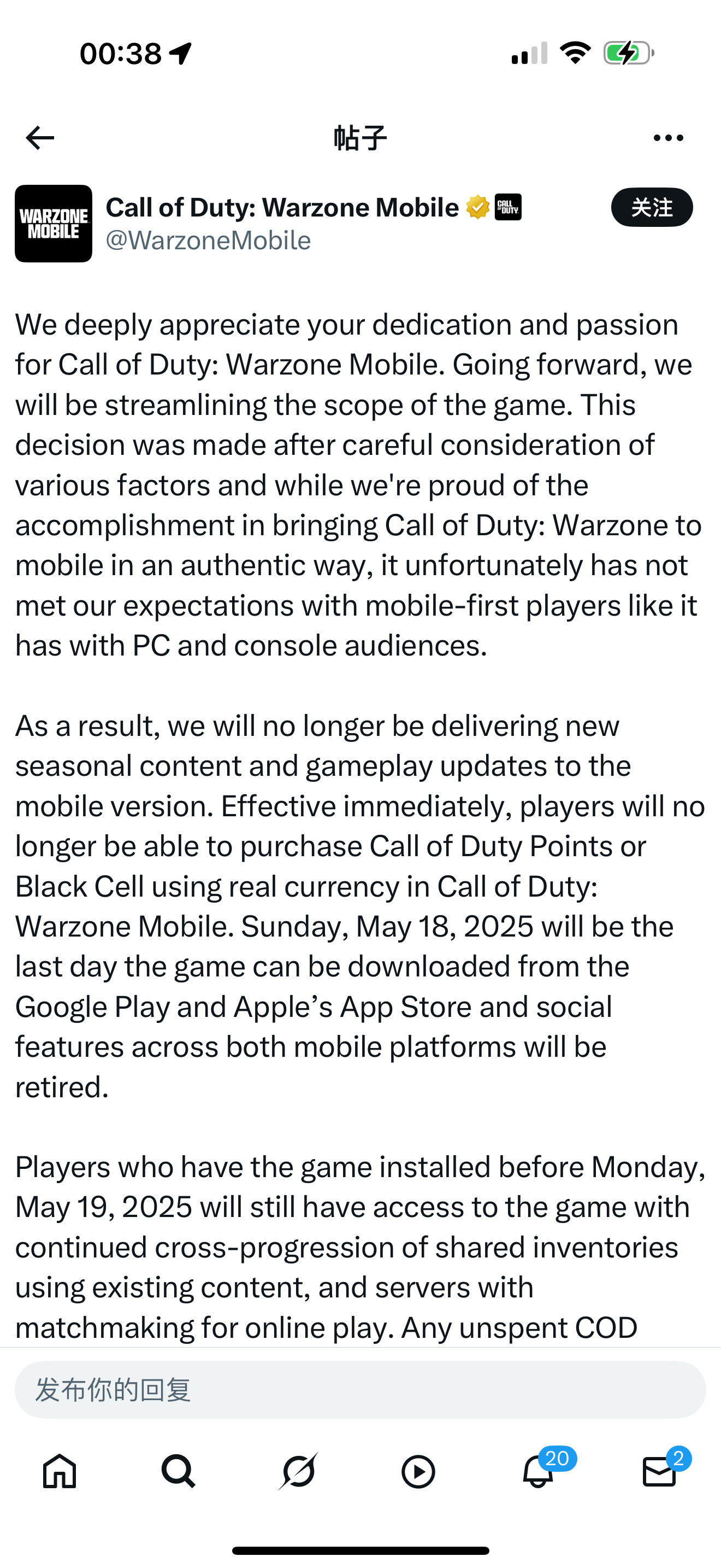 X上《使命召唤:战区》 停运公告