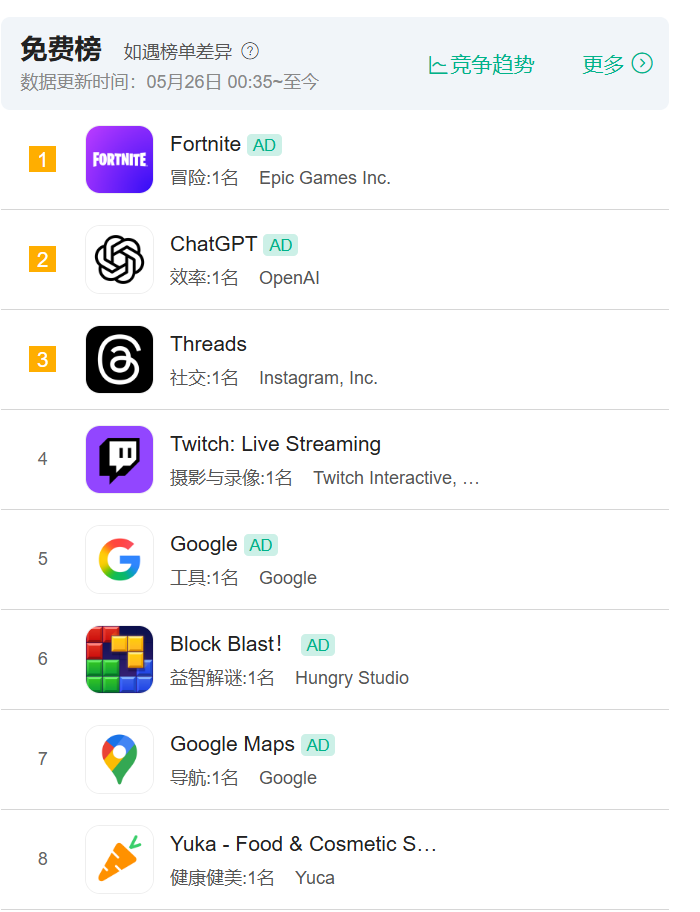 下架5年后Fornite堡垒之夜重回榜一