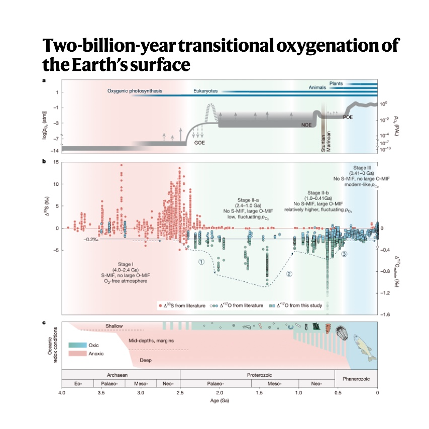 Wang H, Li C, Peng Y, et al. Two-billion-year transitional oxygenation of the Earth’s surface[J]. Nature, 2025: 1-7.
