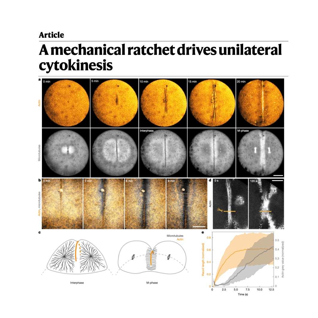 - Kickuth A, Uršič U, Staddon M F, et al. A mechanical ratchet drives unilateral cytokinesis[J]. Nature, 2026: 1-9.