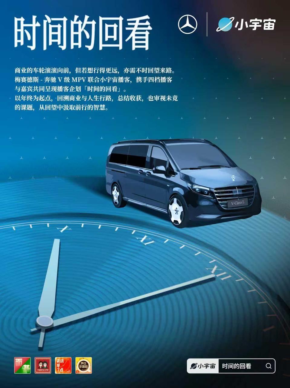 作为高端豪华 MPV,梅赛德斯-奔驰V级 MPV 拥有同级最大空间,从大气外观、头等舱座椅、动力科技再到安全配备,为您带来全能的豪华体验,并且兼顾商务和家庭出行的双重需求。V级 MPV 以全方位的实力,于经典豪华之上,再创全新格局。也欢迎大家收听梅赛德斯-奔驰「时间的回看」播客企划的其他节目,愿你不忘来时路,驰骋天地间。