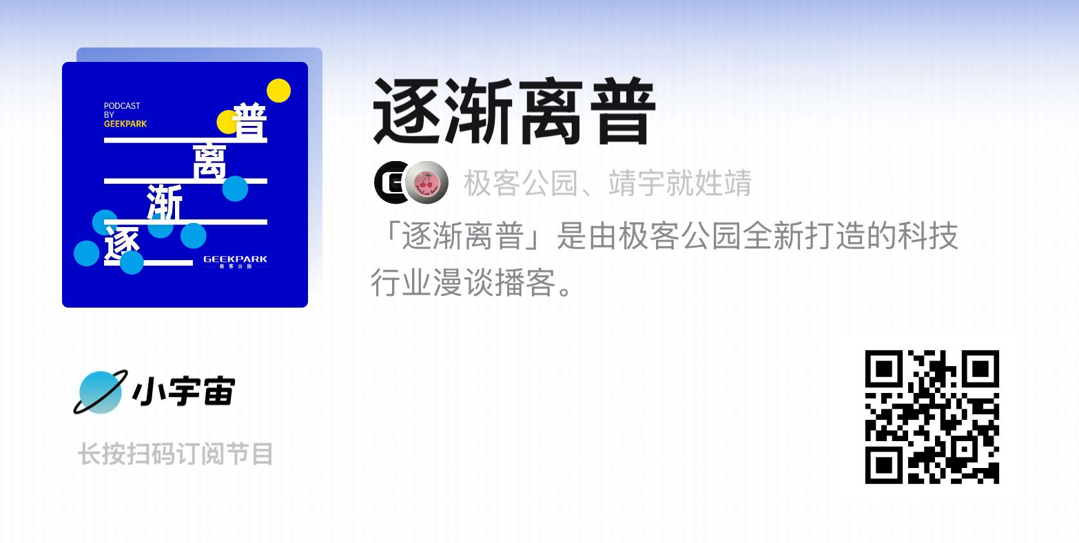 🎉由极客公园全新打造的科技行业漫谈播客「逐渐离普」上线啦!