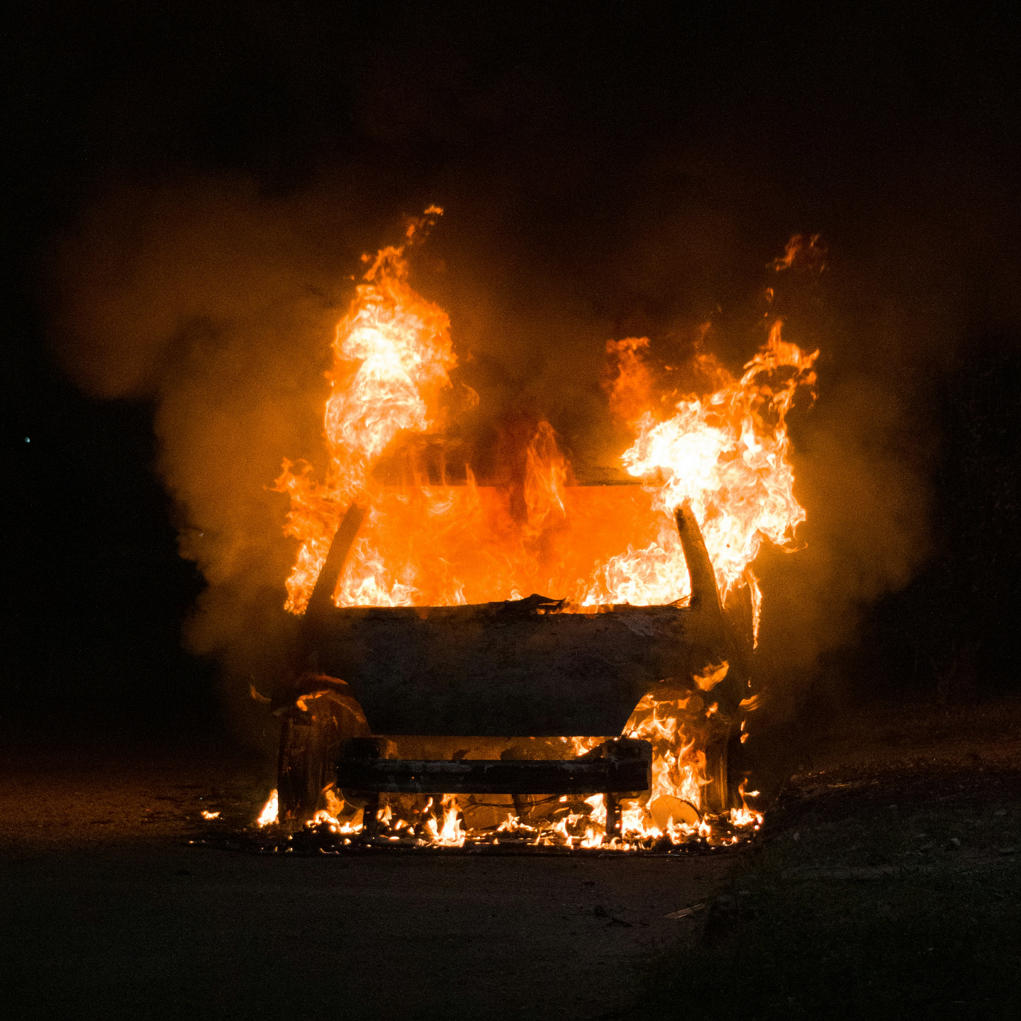 案发现场被烧毁的车 红圈处为尸体所在位置