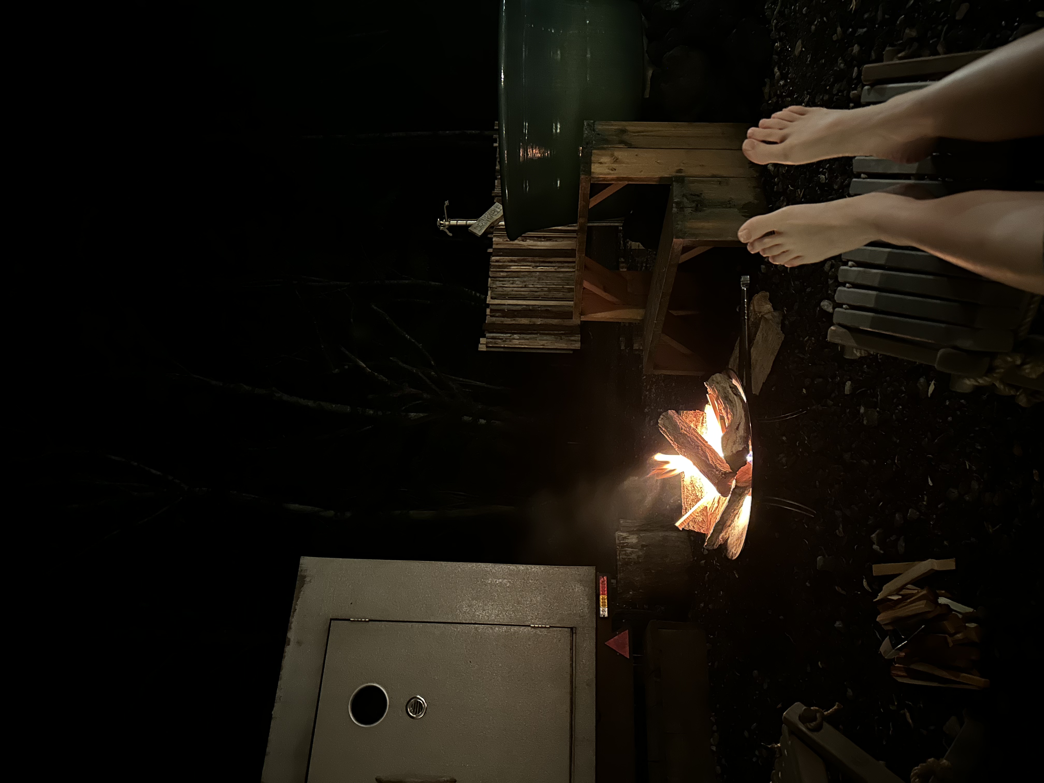 在桑拿小木屋旁自己篝火