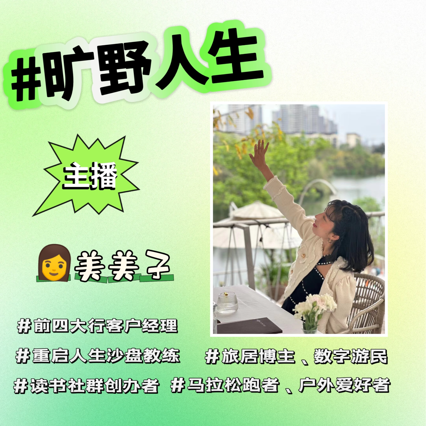 主播1:美美子,99年,国有银行裸辞,探索旷野人生。