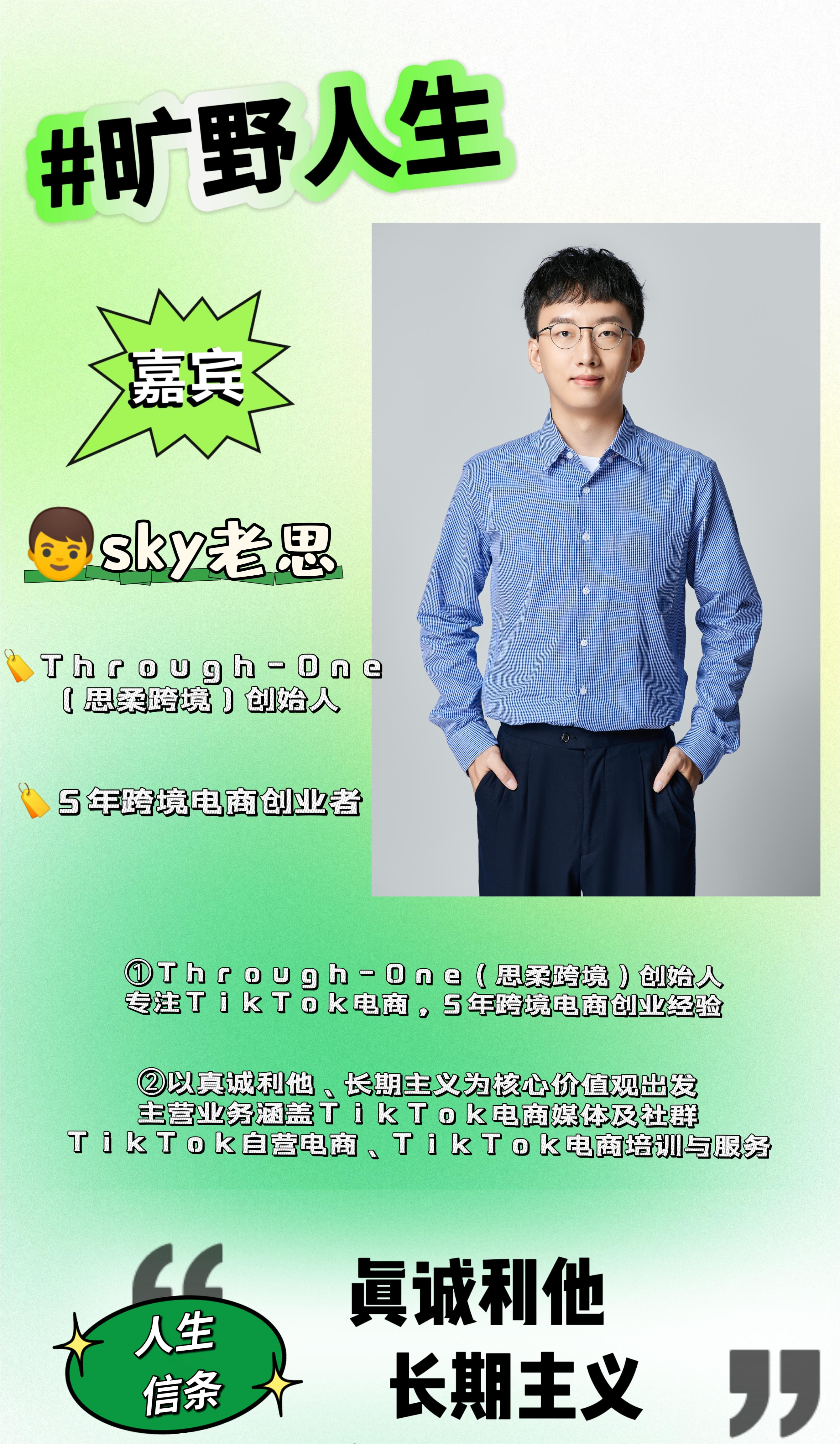 1,Through-One(思柔跨境)创始人专注TikTok电商,5年跨境电商创业经验