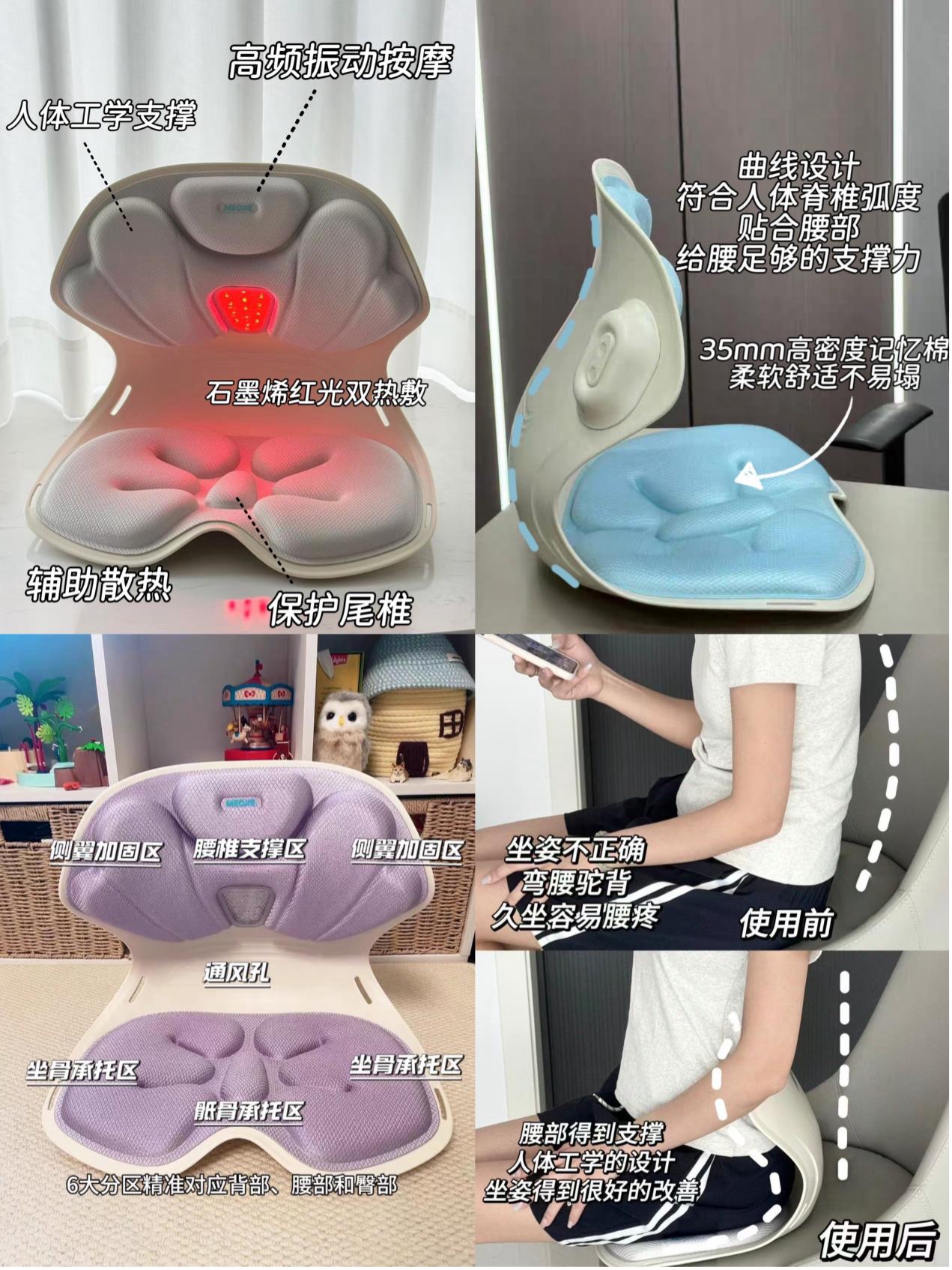 最近我和桃都在密集地工作,作为两个内容创作者,久坐是一个不可避免的命运。所以当妙界找到我们时,光听到产品名字便让我心动:按摩热敷矫姿椅。自从健身后我就一直在与自己的不良身体习惯做对抗,其中就包括跷二郎腿的习惯,而这款坐姿椅采以人体工学的矫姿方式标本共治的护腰!