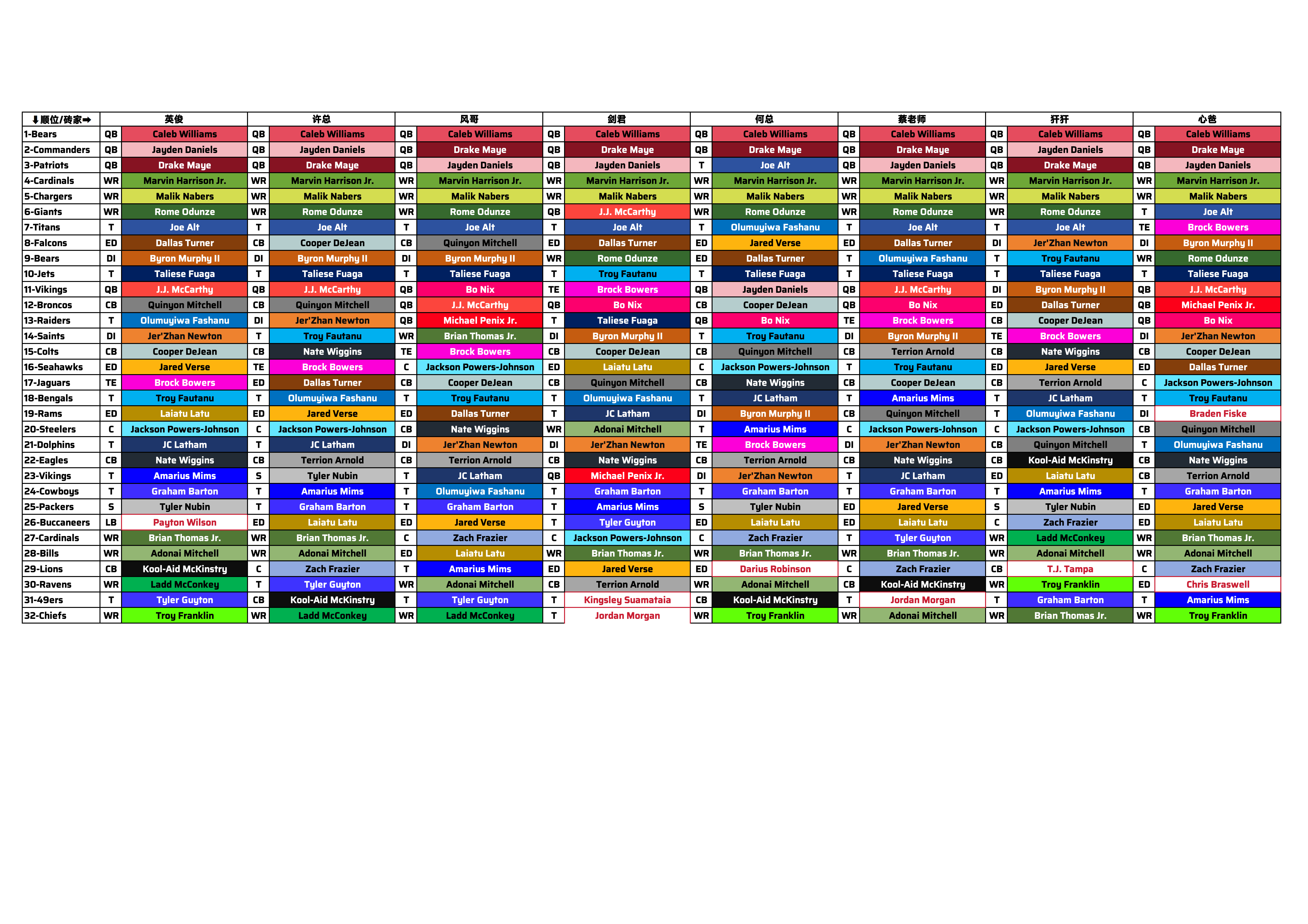 b.低相似度选择阐述:分球队顺位选择各自阐述