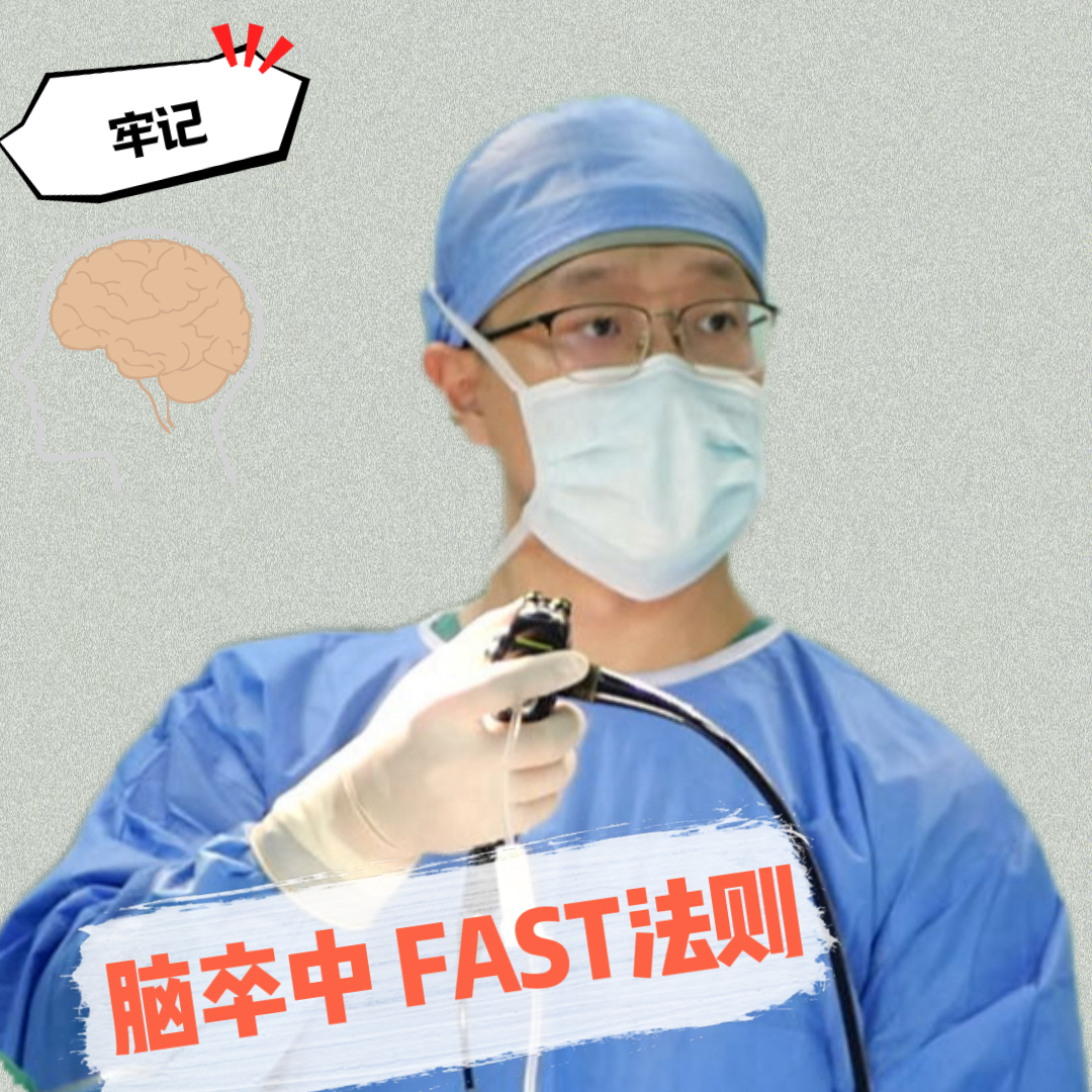 目前,国际上将“FAST”口诀作为判断脑卒中的预警信号。F(Face)面部:观察微笑时面部或嘴角有无歪斜;让患者龇一龇牙,观察面部两侧是否对称。A(Arm)手臂:双臂平举,观察两手是否能保持在同一水平,是否有一只手无力垂落。S(Speech)讲话:让患者试着说一句完整话,背一段家庭住址、电话号码,观察能否按逻辑正确表达、有无口齿不清或无法言语。T(Time)时间:发生上述症状,应第一时间送往医院,不能抱有“再等等看”的心态,错过这个时间窗,患者就错失了血管再通的机会。用通俗的中文来表达,即“言语含糊没笑脸,胳膊不抬奔医院”[1]。