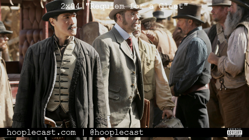 Episode Sixteen. Harold joins us for a "conversation" of this most gleetful of episodes. A disfigured road agent exacerbates Dan's very bad day... Al's stones are loosened by Jewel's sonic screams... William takes his pet oatmeal for a walk... E.B. berates Richardson, chef savant, but finds himself undone by Alma's feminine intuitions... Maddie continues to confound the hoopleheads with her bizarre behavior. ... Also, Paul revisits the sordid affair of Kitty LeRoy and her husband/killer Samuel R. Curley. | Send feedback to hooplecast@gmail.com. Find our recording schedule, show notes, discussion threads, and more at hooplecast.com. | Recorded September 13, 2015. Released September 18, 2015. [Warning: Explicit Language.]