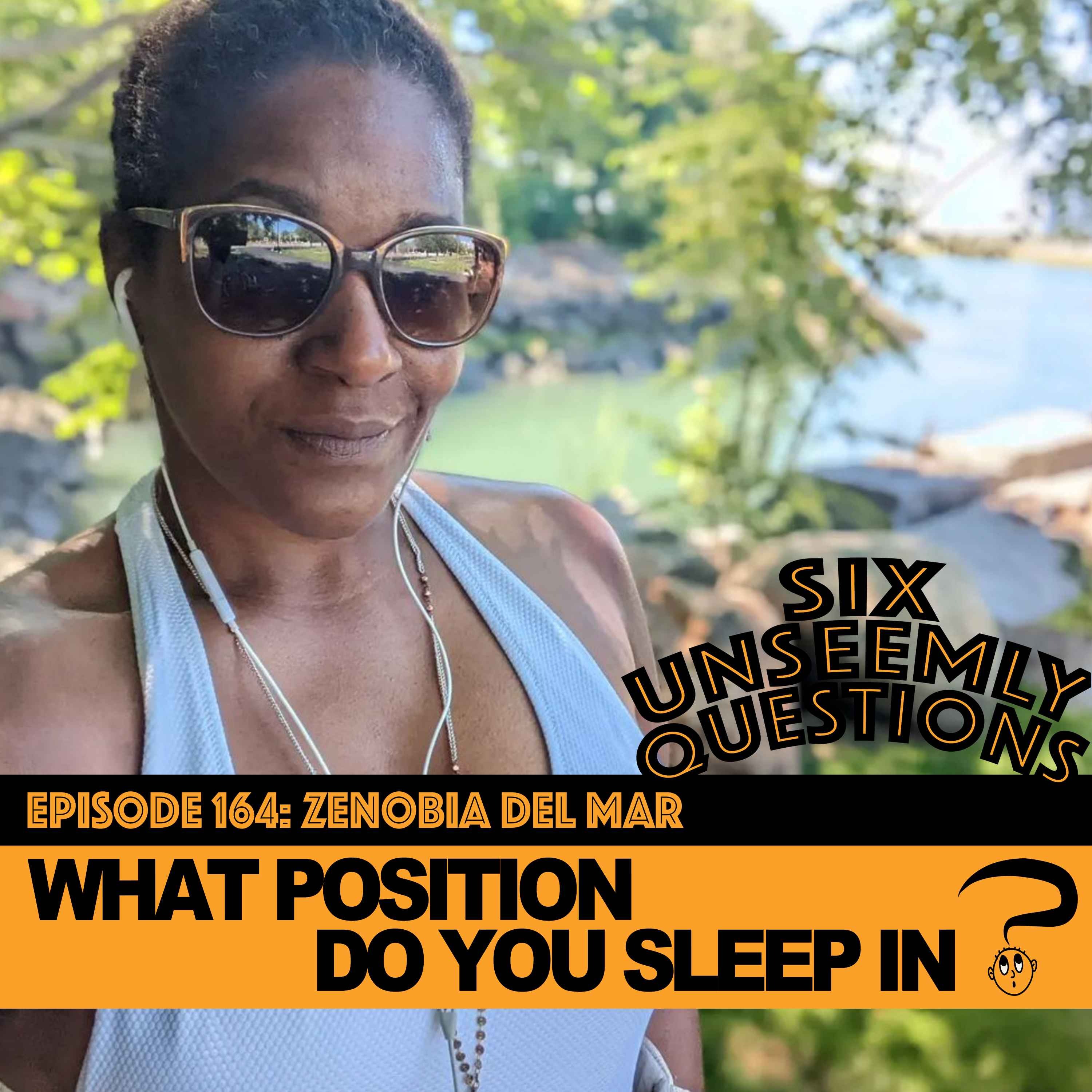 Host Victor Varnado asked comedian Zenobia Del Mar what position she sleeps in. She says she sleeps similar to a runner, and sidekick Rachel Teichman took the question a little too far in a different direction.