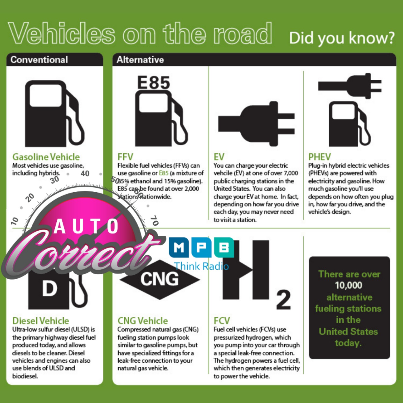 Since it’s St. Patrick’s Day, Auto Correct is going to talk about Green vehicles – not kelly, forest, mint, or lime but ecofriendly vehicles that produce less harmful impacts to the environment than comparable conventional internal combustion engines. And we’ll answer your repair questions.
