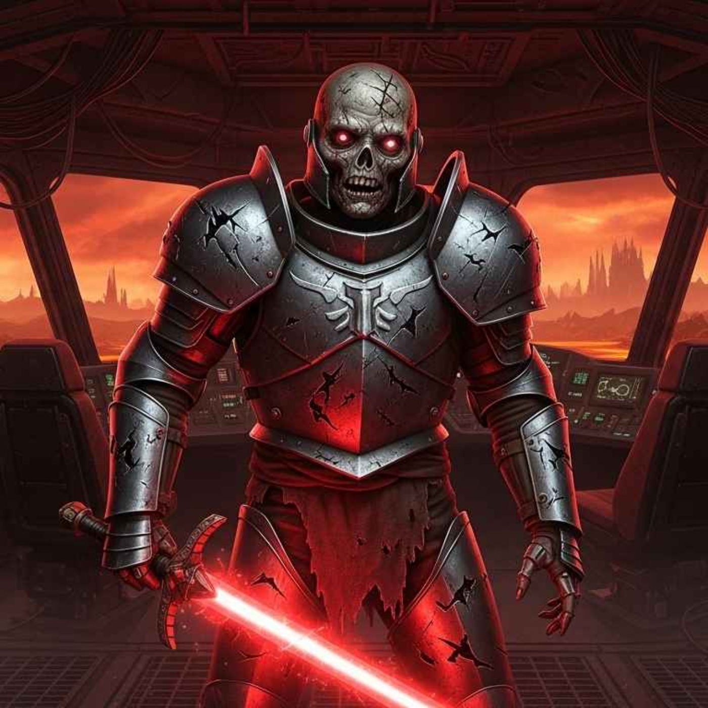 Cover Image - Google Whisk - A zombie dressed as a knight on a spaceship in hell holding laser sword
