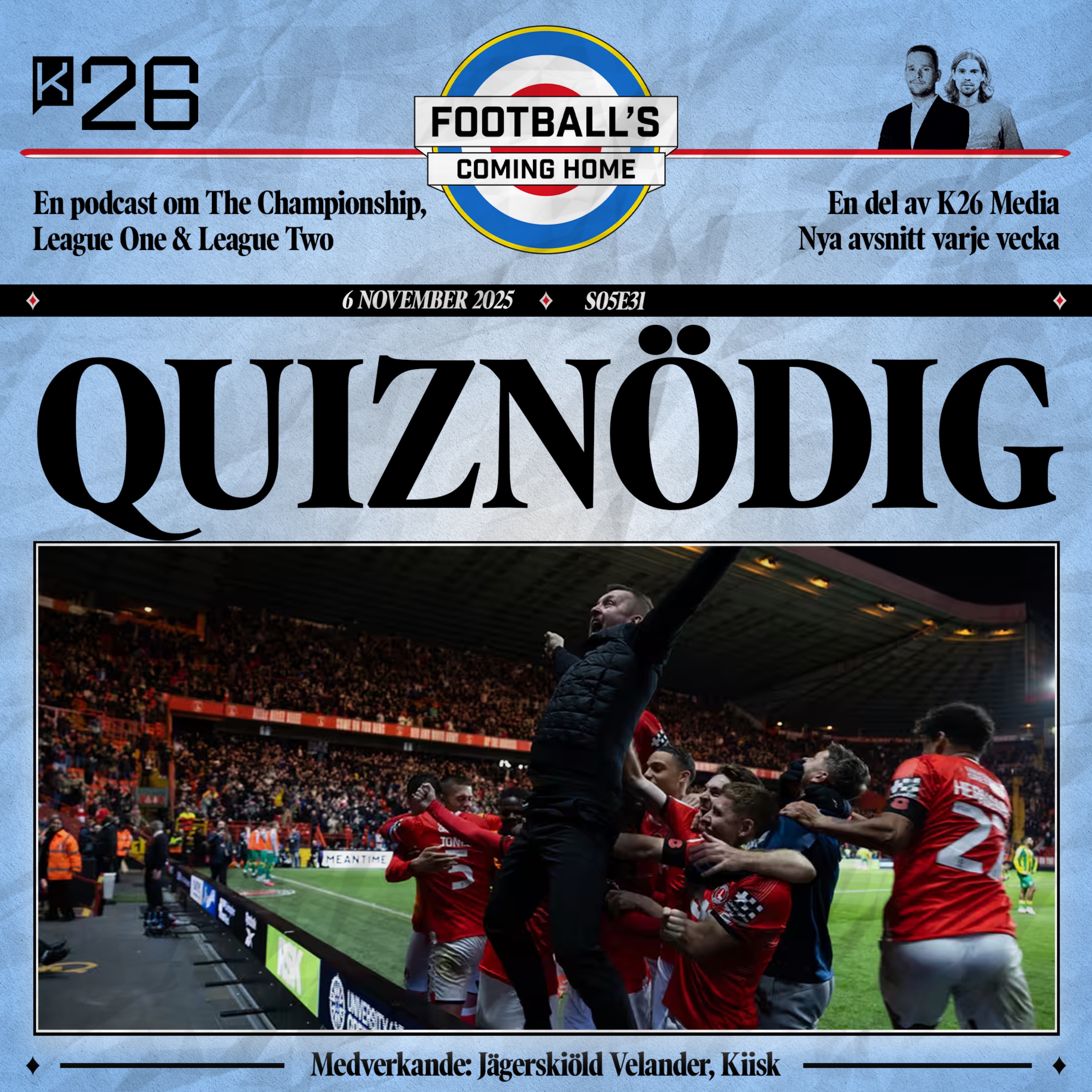 Fullspäckad veckoomgång tas ner där Charlton firade rejält. Frank Lampards Coventry tonsätts av indierockare och dags för Kiisks quiz.