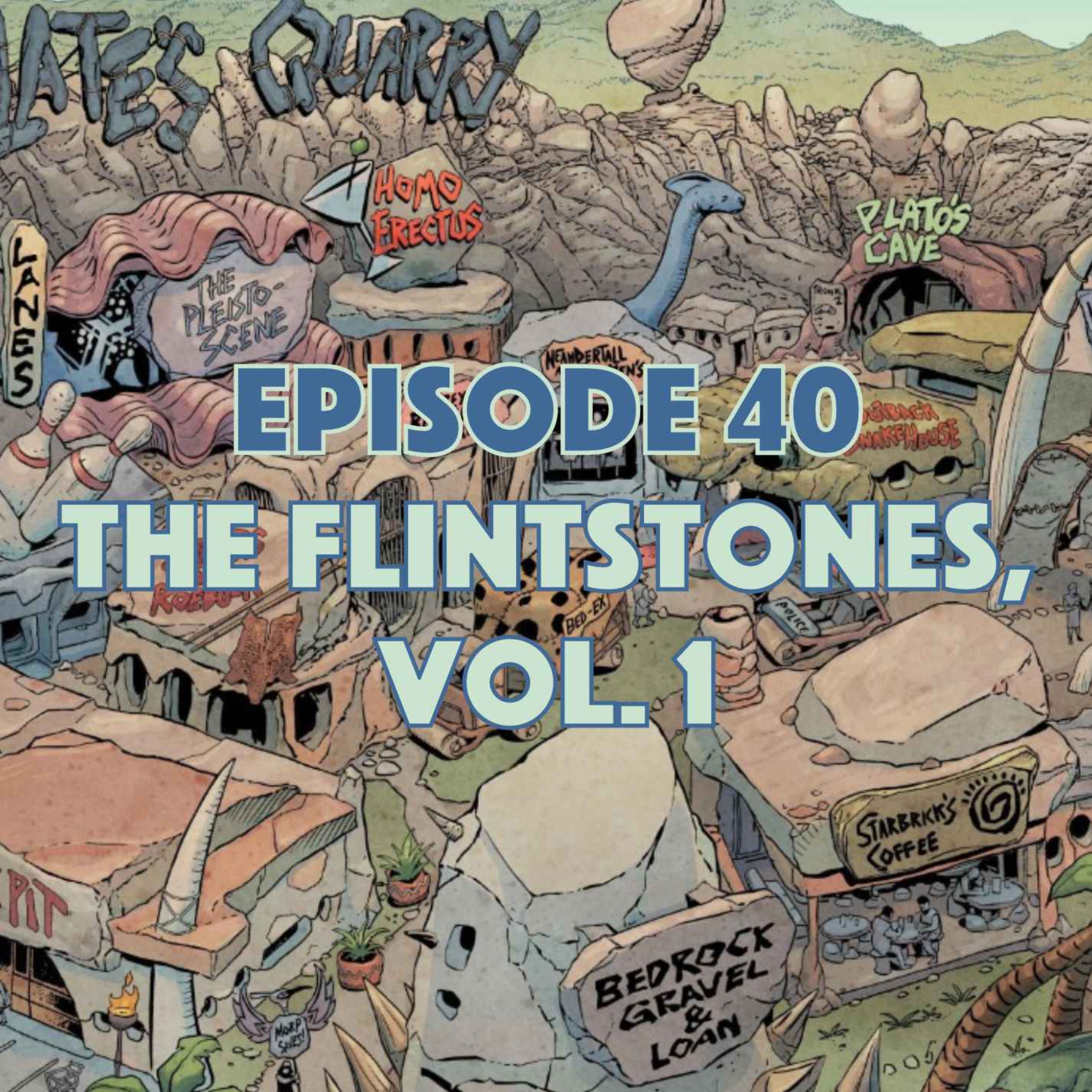Join Johnny, Dennis, and guest host Anthony Siino (you remember him from Episode 36) as they take a look at The Flintstones, Vol. 1, by writer Mark Russell and artist Steve Pugh. The Flintstones, Vol. 1 was published by DC as part of the Hanna-Barbera Beyond imprint. This comic is a modern spin on the prehistoric family we all know so well, granting us a glimpse of how civilization possibly began (including Imperialism, Religion, and Capitalism).