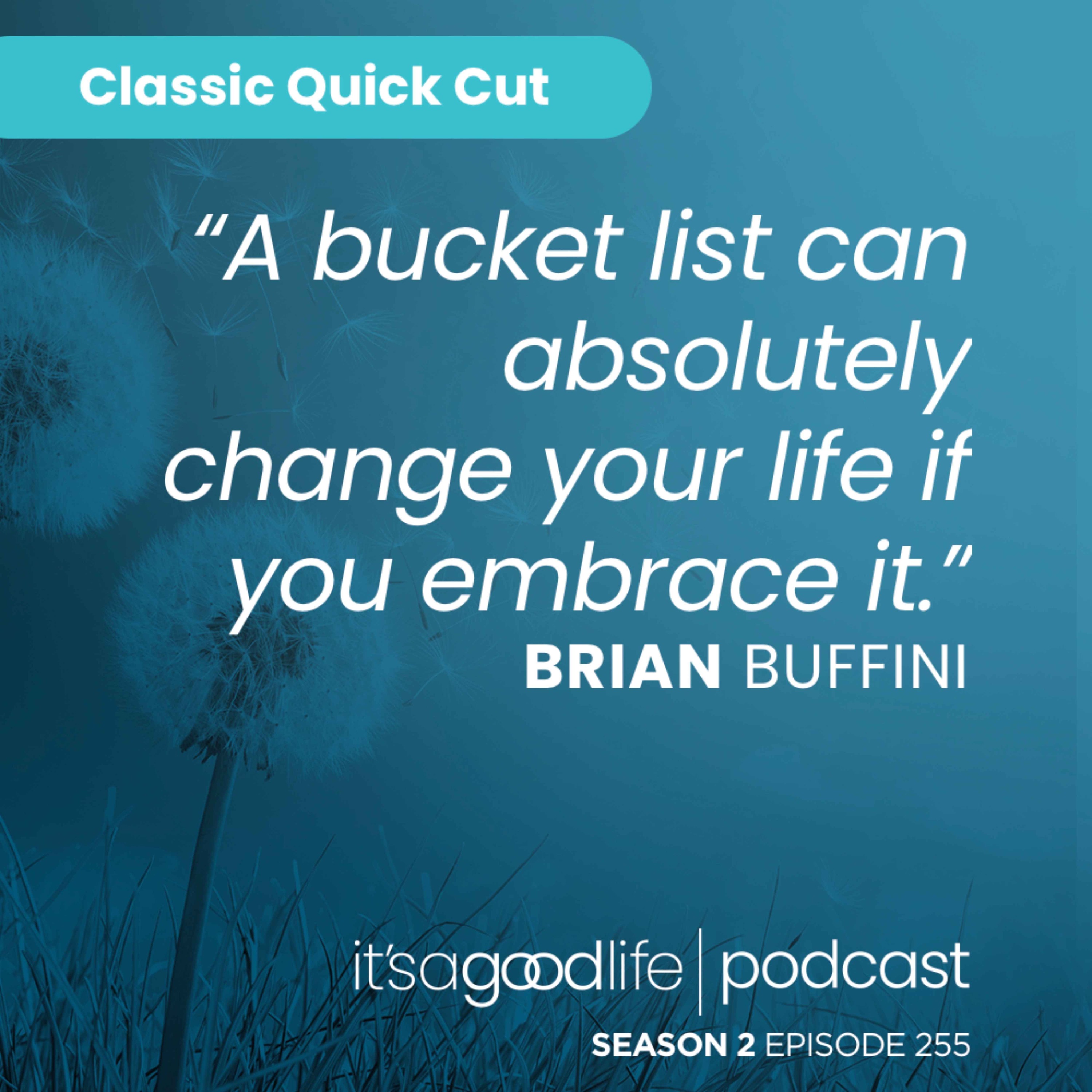 Many people mistakenly believe that a bucket list is something you only make if you receive a bad health diagnosis. If you embrace it, however, a bucket list can give you hope, show you purpose, and introduce joy back into your day. In this episode, Brian teaches how to write a life-changing bucket list. He describes how to categorize your dreams, why it’s vital to stimulate yourself visually, and how to create a bucket list that reflects what the good life looks like for you. He also gives away the best goal-setting resource he has ever built. By the end of the episode you’ll be on your way to taking a bite out of life with the bucket list of your dreams!