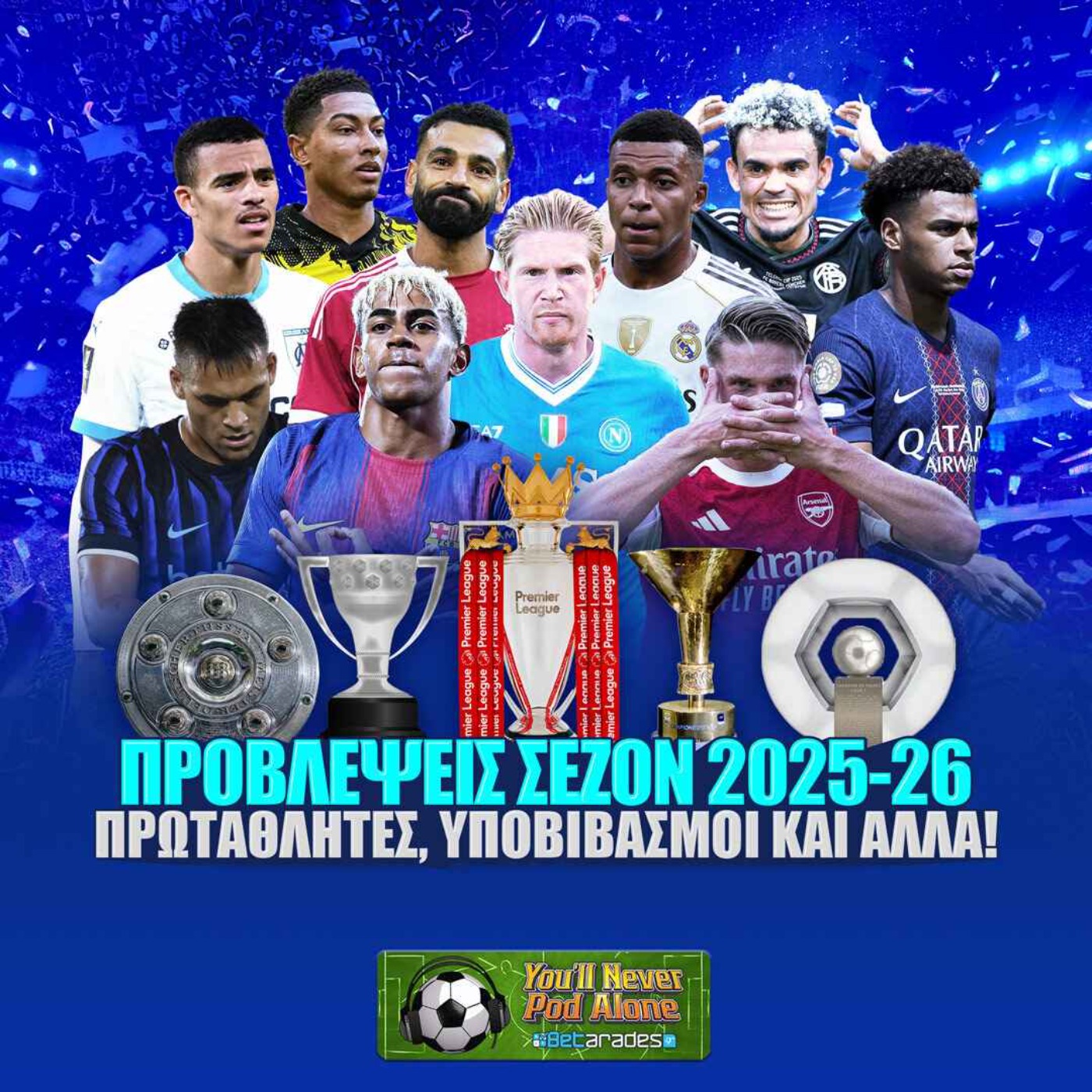 Στο νέο επεισόδιο You'll Never Pod Alone, οι Δημήτρης Βασιλάκος, Παναγιώτης Κιστογλίδης και Θανάσης Χαρίσης κάνουν τις προβλέψεις τους για τη σεζόν 2025-2026 σε Πρέμιερ Λιγκ, Λα Λίγκα, Σέριε Α, Μπουντεσλίγκα και Λιγκ 1. Μαζί με καυτές μεταγραφικές εξελίξεις!