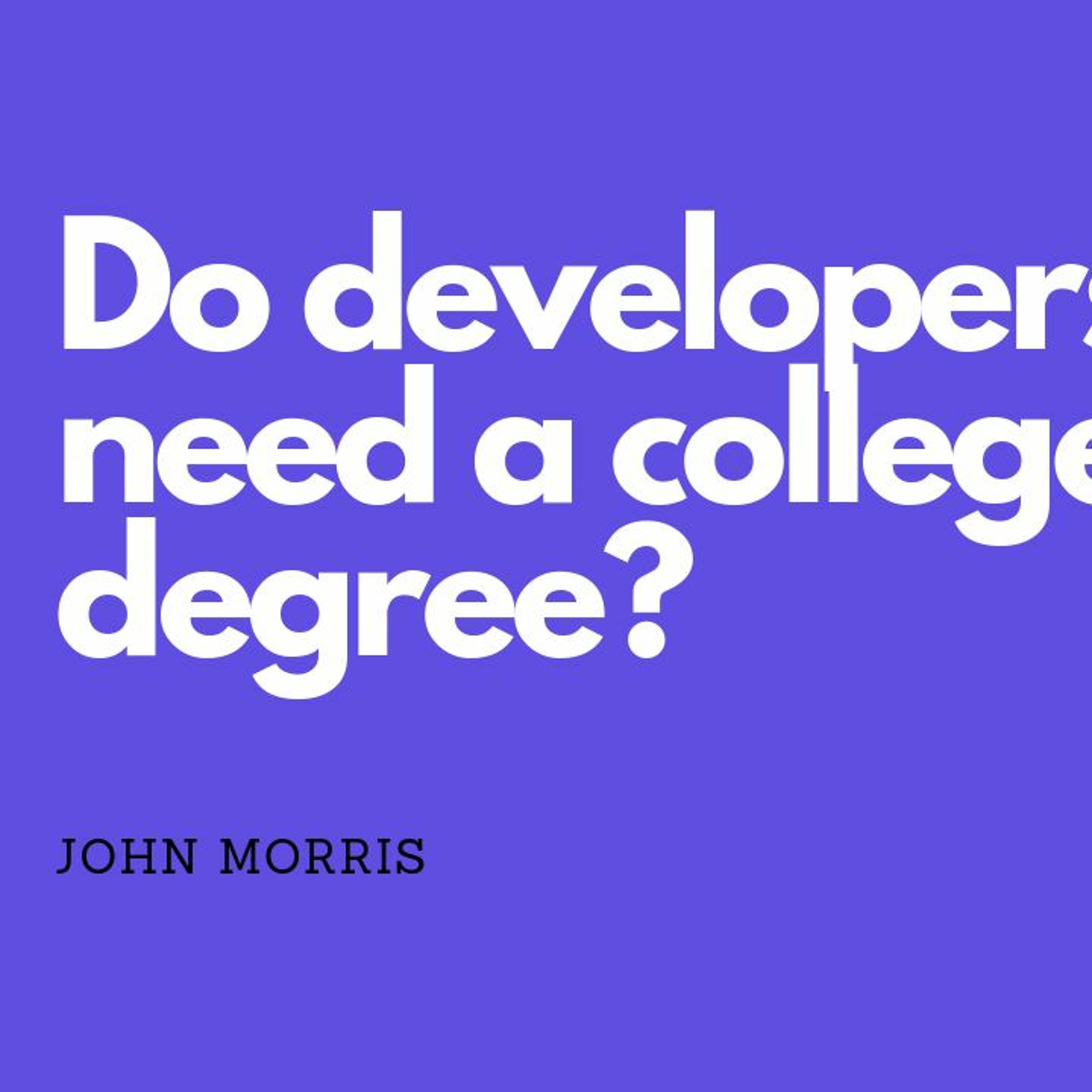 "You don't need college degree to be a web developer because people with advance college degree create libraries so that people without college degree can get a job." That's the comment I just got on YouTube.🙄Let's tear this guy a new... ahem...I mean, my thoughts.