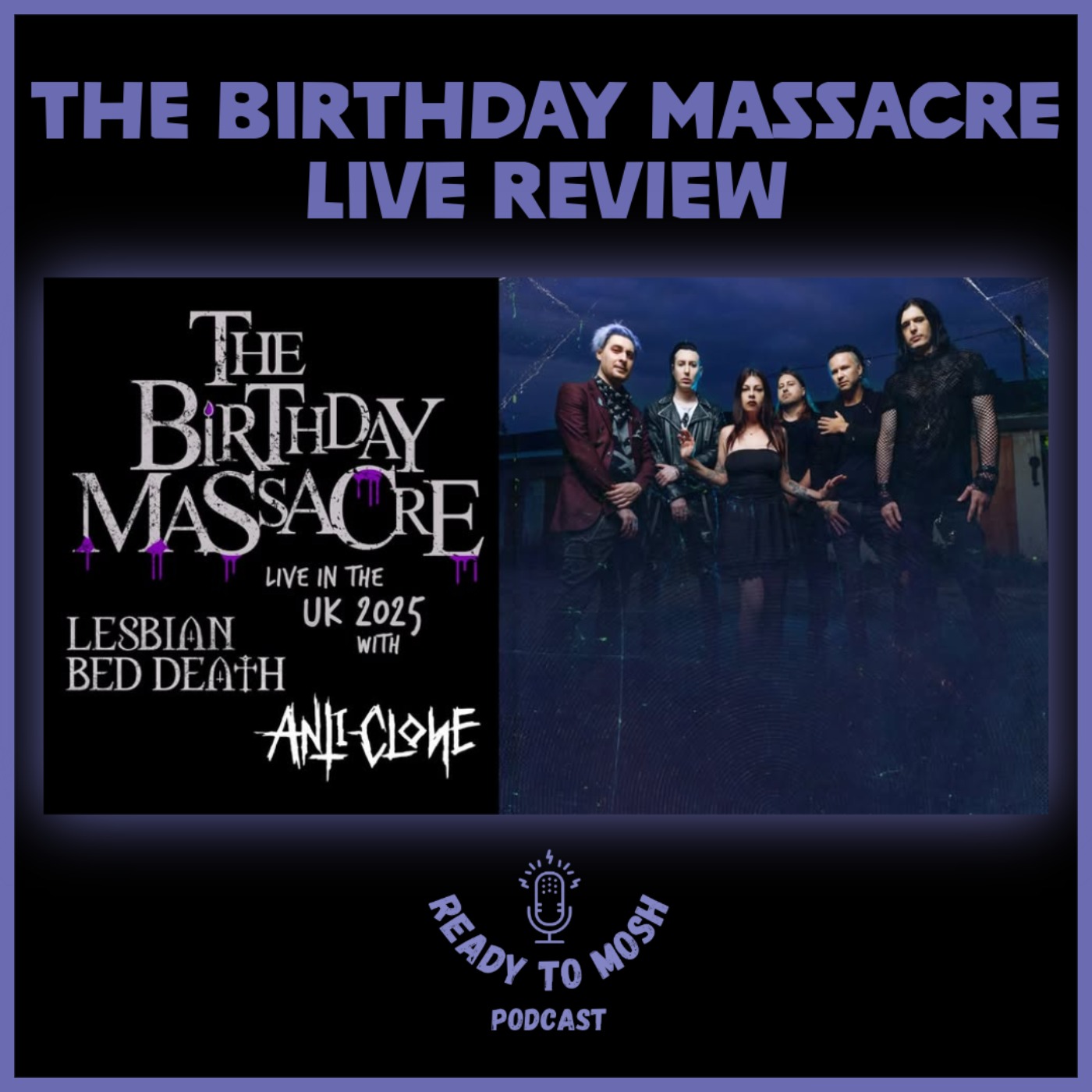 After what seems like a lifetime, we have a live review from the Rescue Rooms in Nottingham. In this episode, we went to watch The Birthday Massacre with support from Lesbian Bed Death and Anti Clone. Find out our thoughts on all three bands, a merch purchase and all the between band turnarond dancing!