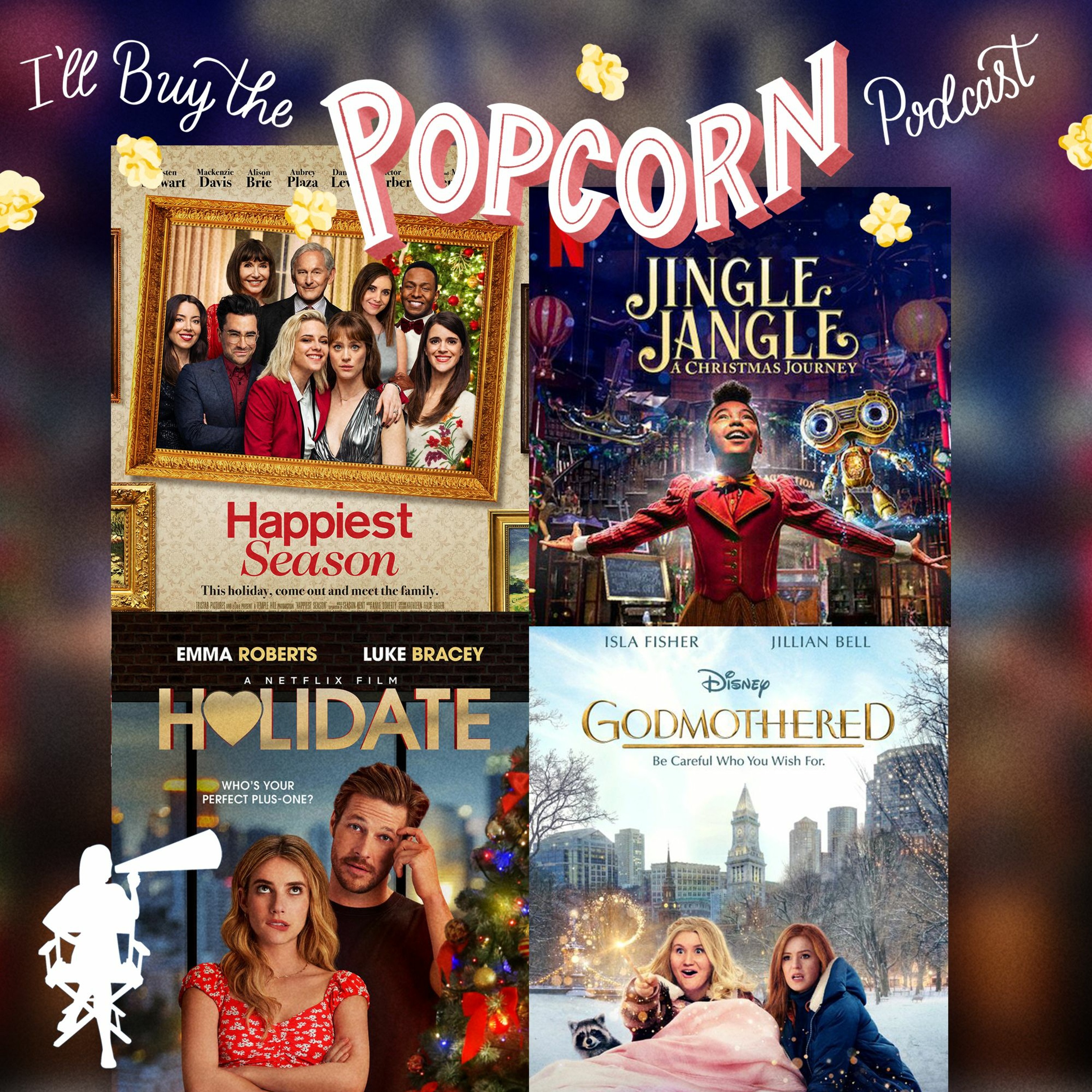 It's Four Christmases for us! (Not the movie with Reese Witherspoon but actually 4 Christmas movies). We get cheery with Holidate, Jingle Jangle, Godmothered & Happiest Season.