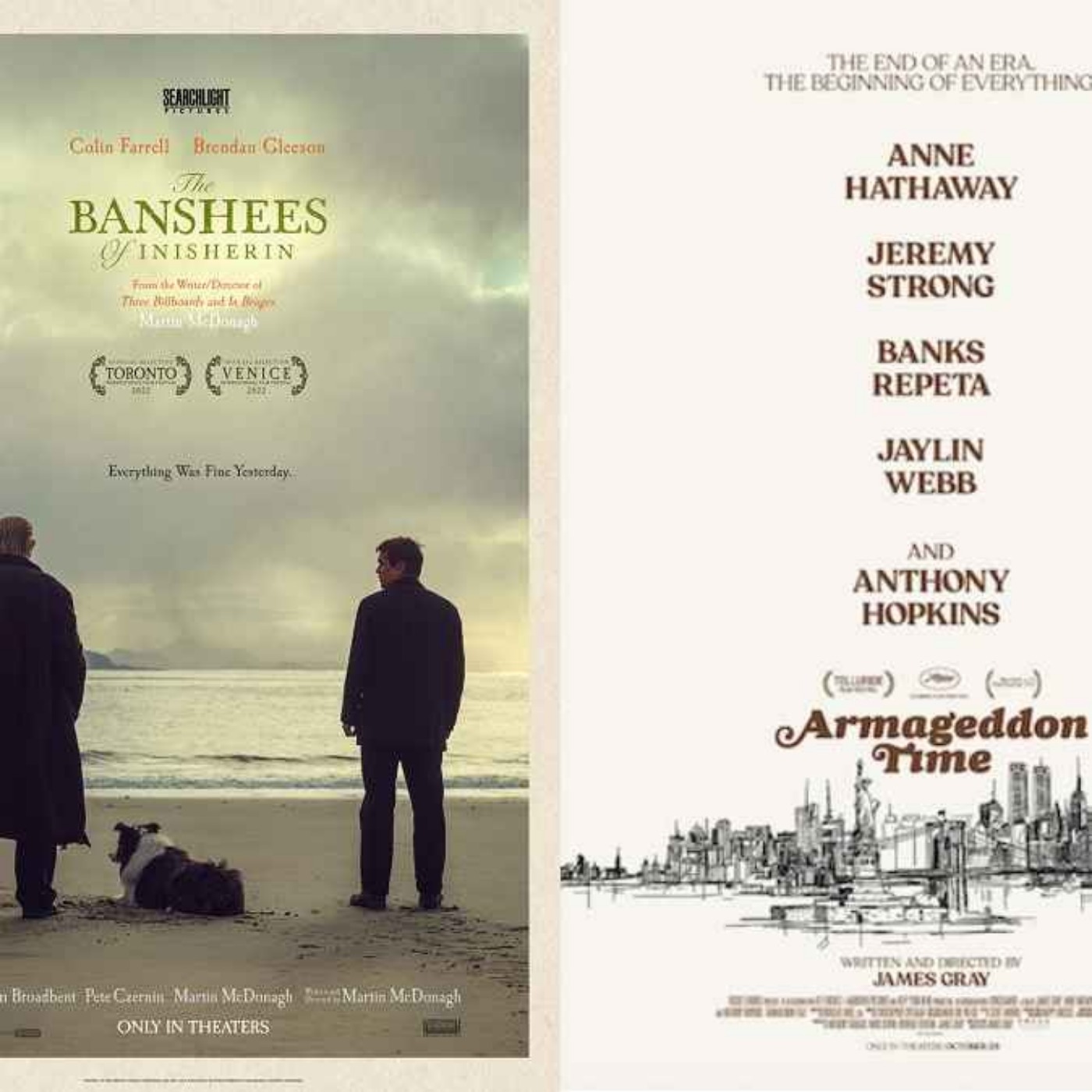 Check out Armageddon Time with Sir Anthony Hopkins and Anne Hathaway (from Focus Features) and The Banshees of Inisherin, festival darling starring Colin Farrell, Brenden Gleeson, and Kerry Condon (from Searchlight).