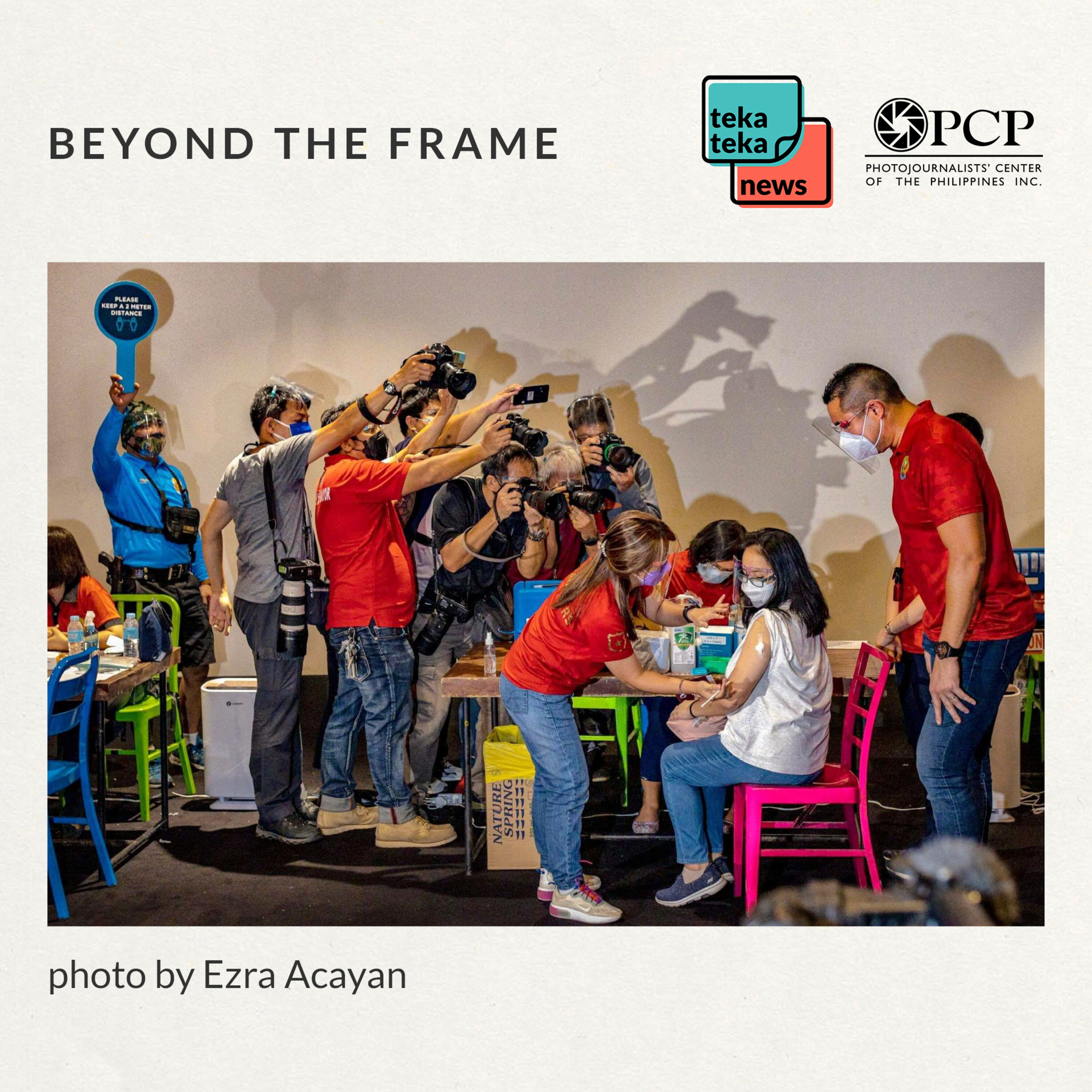 Photojournalist Ezra Acayan shares the story behind his picture of a vaccination center in San Juan City back in June 2021. The photo of journalists bearing over a woman getting a covid shot shows the humor, irony, and struggle photojournalists face while covering the pandemic.