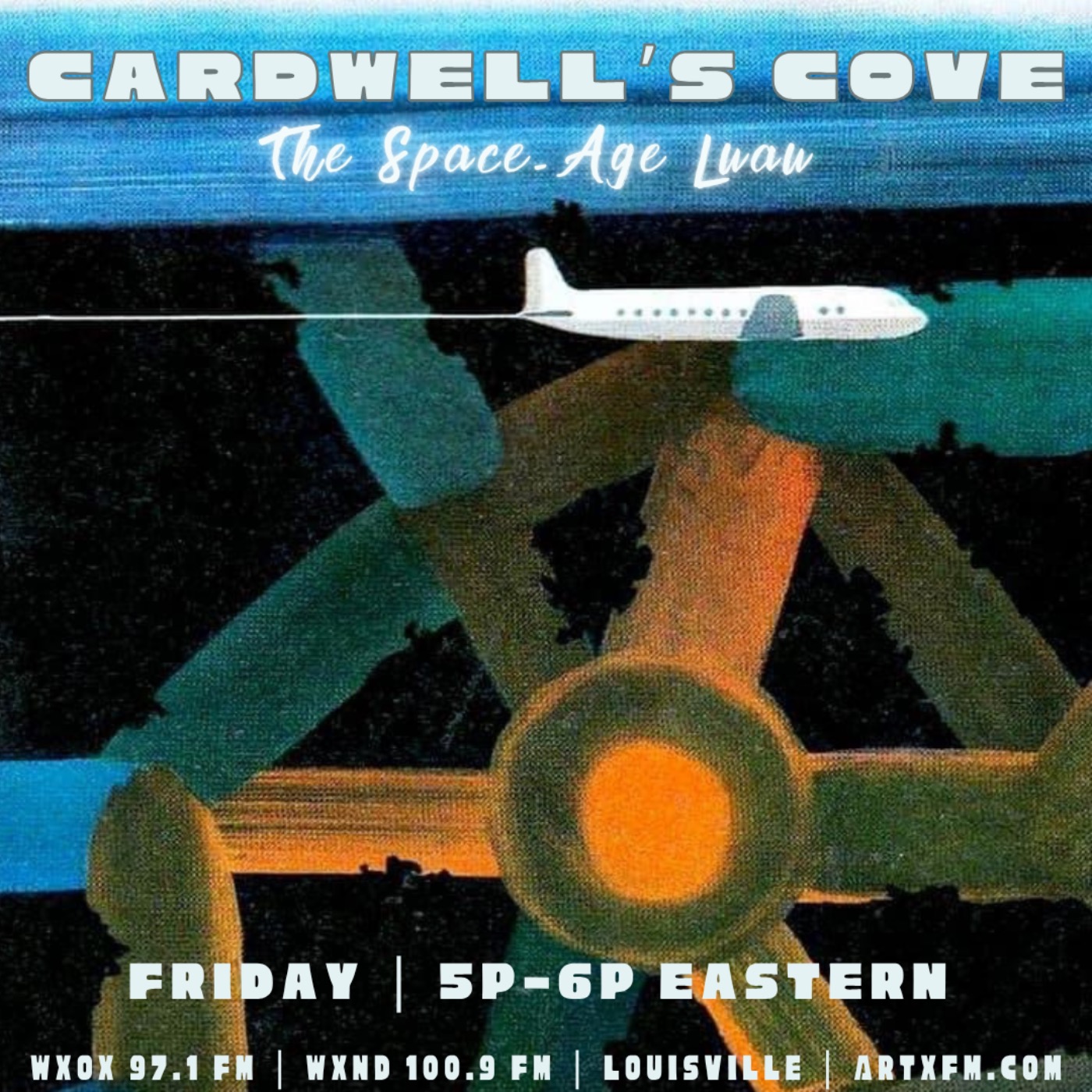 Hey, you hip & cool jetset cats! Join the Space-Age Luau at CARDWELLS COVE with your host, Adrian Cardwell. This show is an audio tour through time and around the world where palm trees sway! It is an upbeat, eclectic, global program, breaking the old tiki music mold!