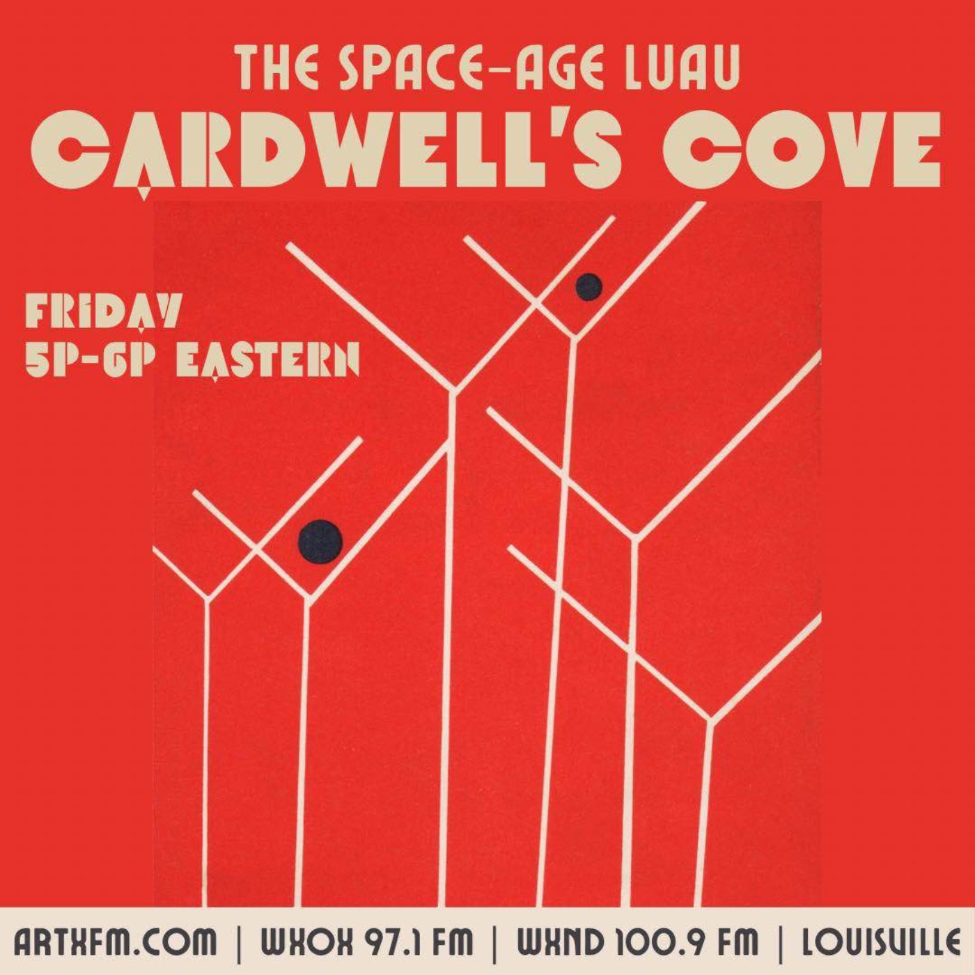 Hey, you hip & cool jetset cats! Join the Space-Age Luau at CARDWELLS COVE with your host, Adrian Cardwell. This show is an audio tour through time and around the world where palm trees sway! It is an upbeat, eclectic, global program, breaking the old tiki music mold!