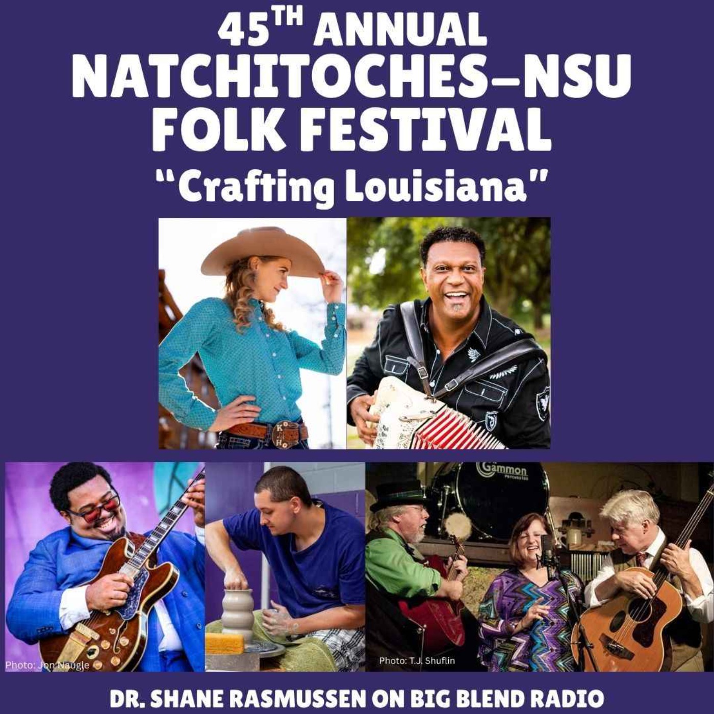 This episode of Big Blend Radio’s “Historic Jefferson Highway” Show features Dr. Shane Rasmussen, Director of the Natchitoches-NSU Folk Festival and NSU’s Louisiana Folklife Center. Held in historic Natchitoches, Louisiana—a destination along the Jefferson Highway—the 45th Annual Natchitoches-NSU Folk Festival takes place Saturday, July 19, 2025, in air-conditioned Prather Coliseum.