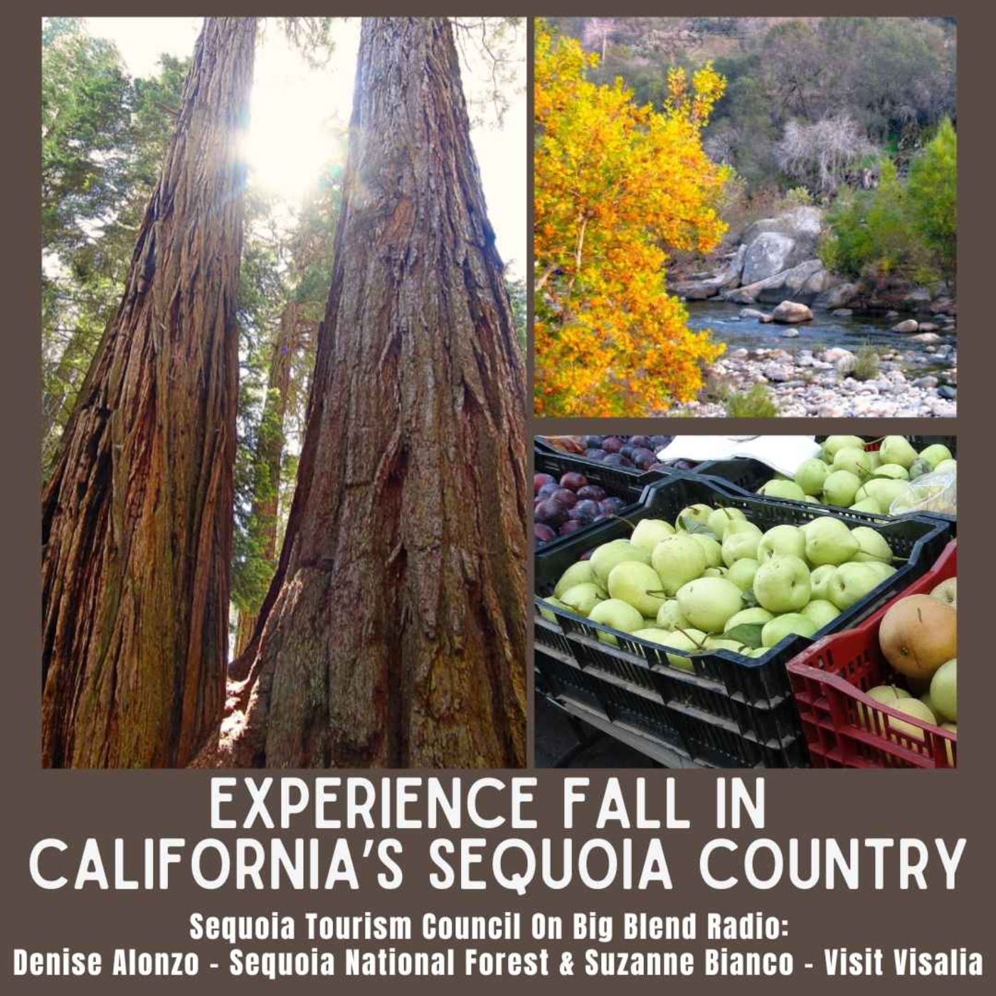 This episode of Big Blend Radio's 1st Thursday "Travel Tulare County" Show focuses on what you can experience in California's Sequoia Country from outdoor adventures like hiking, camping, and fishing, to exploring the local public art, and attending farmers markets, and seasonal festivals and events like the Tulare County Fair.