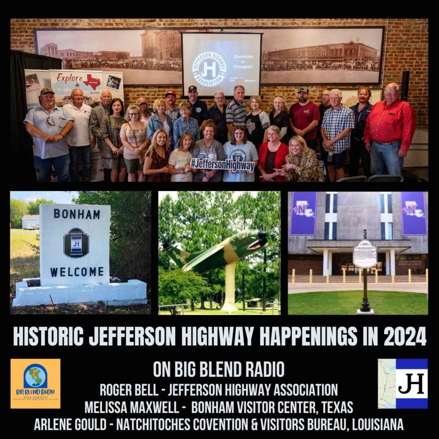 This episode of Big Blend Radio's "Jefferson Highway" Show focuses on the progress of the Jefferson Highway Association's programs and initiatives, including the upcoming Annual Jefferson Highway Conference and Sociability Run. This international conference will be held in Alexandria, Louisiana from April 24-27, 2024
