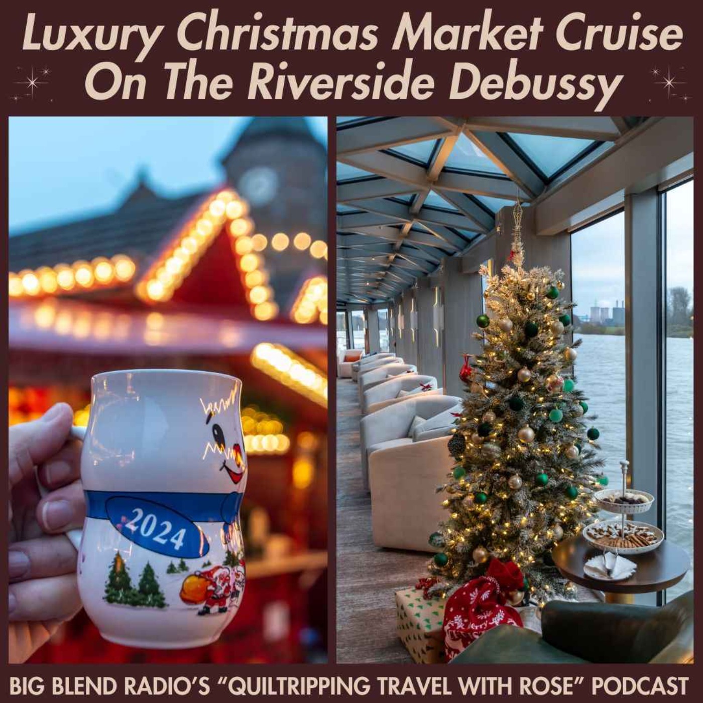 Get into the spirit of the holiday season episode of Big Blend Radio's "Quiltripping Travel with Rose" Podcast where travel writer Rose Palmer calls in from The Riverside Debussy riverboat, gliding down the Rhine River, midway through an 8-day Christmas Market river cruise that started in Amsterdam and will end in Frankfurt. Read her story about her experiences, here: https://blendradioandtv.com/listing/luxury-christmas-market-cruise-on-the-riverside-debussy/