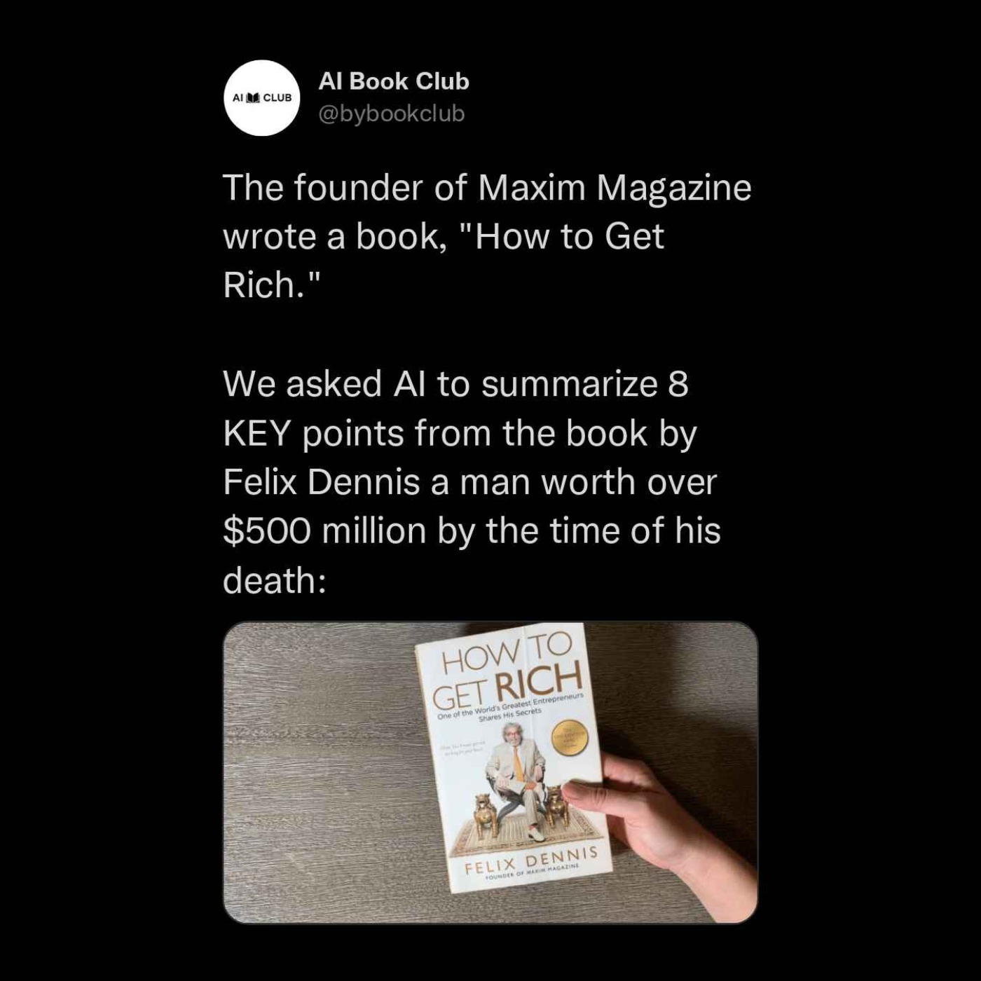 In this episode of AI Book Club, we explore the timeless classic "How to Get Rich" by Felix Dennis. Dennis was a successful publisher and entrepreneur who built a media empire from scratch. In this book, he shares his candid and practical advice on how to create wealth and achieve financial success.