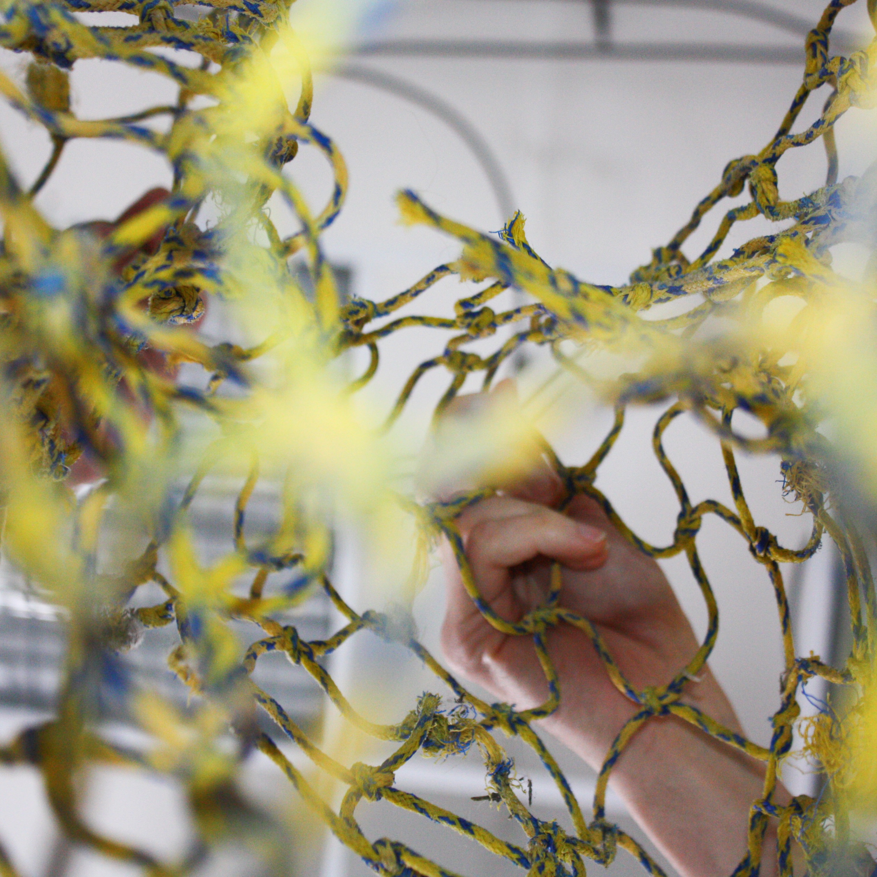 At the beginning, we talk about an old performance of Antoine’s. The net is a performative device that takes the form of a collective game where language is woven. This yellow net extends like a narrow strip of about 50 cm wide by 3 meters long, inviting participants to enter into dialogue with it and with each other. The fishing net that Antoine crafted is made for performance. It was about taking a fishing net and saying words to create a narration. Each participant is invited to place their hands on the net. The goal is simple in appearance: to get out of the net together. To progress, each person takes turns saying a word or a fragment of a sentence, inspired by the immediate environment, by the material of the net or by the associations of ideas that it arouses. Each word spoken is equivalent to a step, a knot crossed, a collective approach towards the edge of the net. During the performance each word had to resonate with the next one, we can take all the time we need to find a word who can resonate with the previous word. The performance lasted twenty minutes, when finally we all accessed the end of the path of knot and we stop saying words. This sound is a combination of report, documentation and narration. There is no visual documentation of the performance, only the artwork that indicates the existence of the net. At the beginning of the podcast, you can hear the note of intent in the sound as well as the recording of the performance with the net.