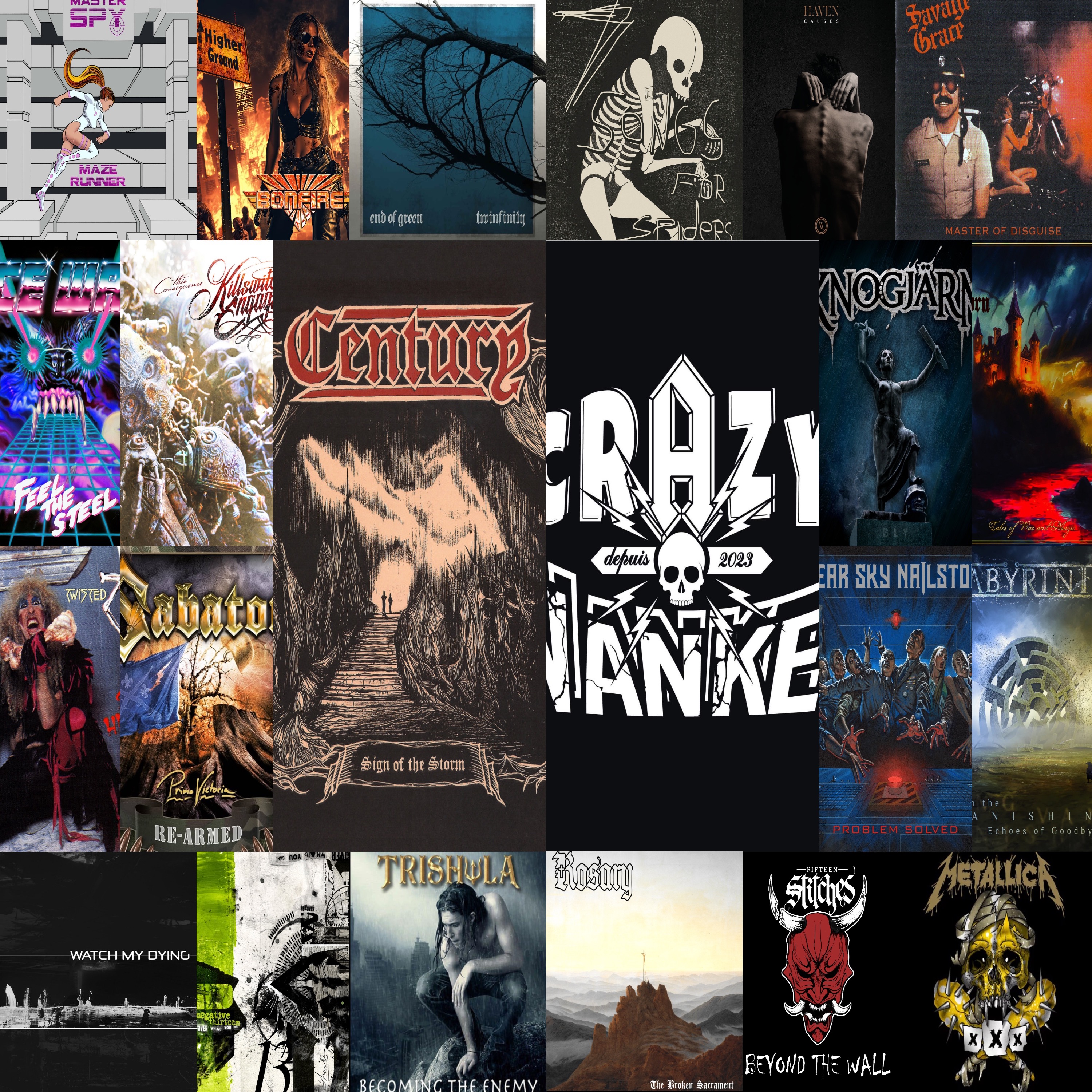 Alors dans la 22e émission de la 2nde saison de CRAZY WANKER, soit la 73e (+1), on ne vous prend pas pour des pigeons avec une sélection de 21 titres, jugez-en par vous-même puisque vous aurez 17 nouveautés (avec MASTER SPY, BONFIRE, END OF GREEN, Dax RIGGS, HAVEN, ICE WAR, KILLSWITCH ENGAGE, CENTURY, KNOGJÄRN, RING LORN, CLEAR SKY NAILSTORM, LABŸRINTH, WATCH MY DYING, NEGATIVE 13, TRISHULA, ROSARY et FIFTEEN STITCHES), la rubrique "Oldie but Goodie" (avec SAVAGE GRACE), la rubrique "l'Originale / la Reprise" (avec TWISTED SISTERS et SABATON) et le live un peu rare pour finir en apothéose (hommage à Marianne FAITHFULL en concert avec METALLICA en 2011 à SAN FRANCISCO).