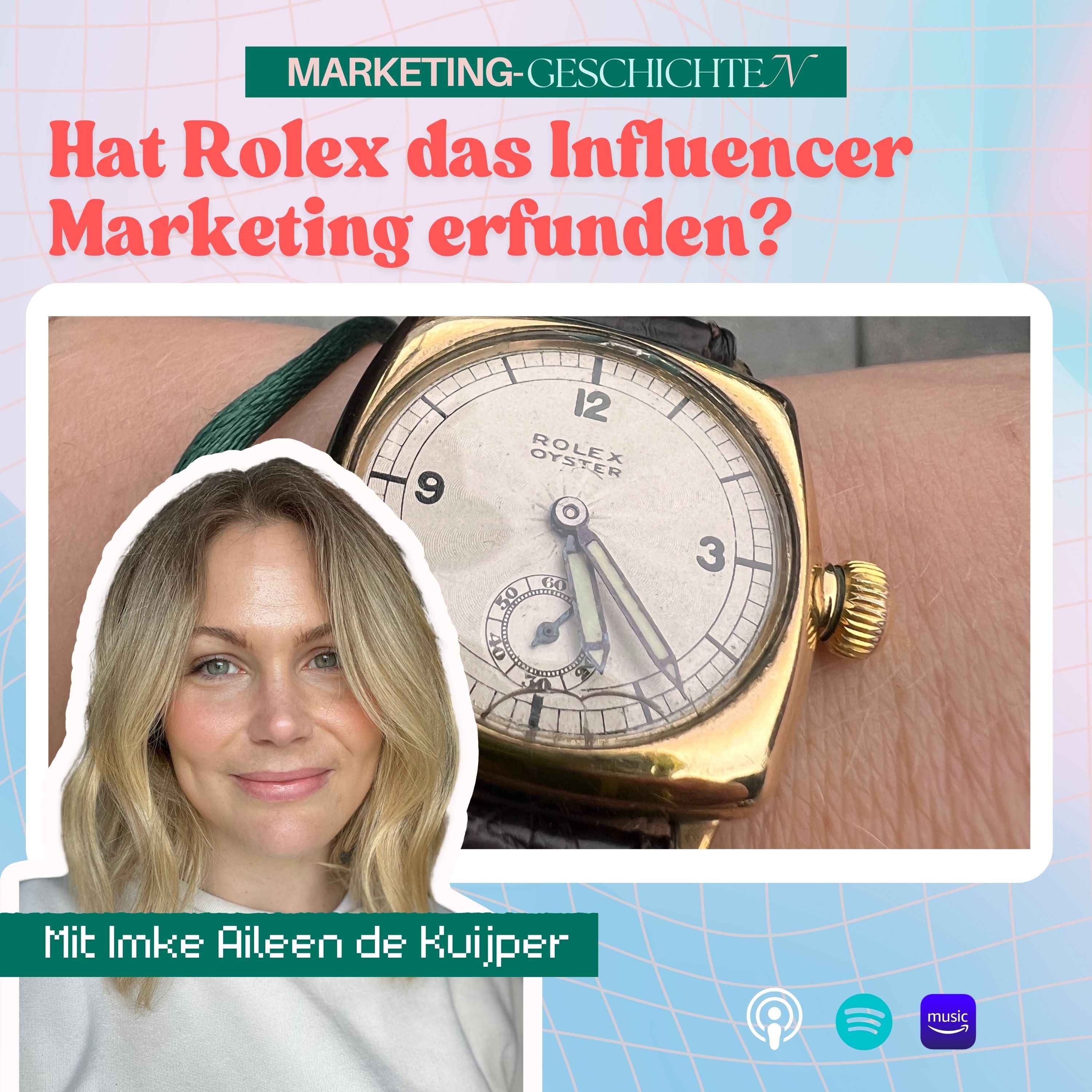 In der 3. Takeover-Folge übernimmt Imke als Gast-Hostin das Mikrofon und erzählt euch die spannende Geschichte von Mercedes Gleitze, dem Rolex-Gründer Hans Wilsdorf und den Ursprüngen des Influencer Marketings.